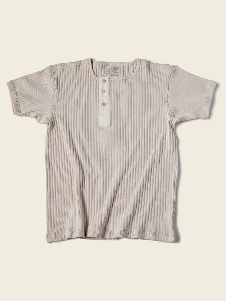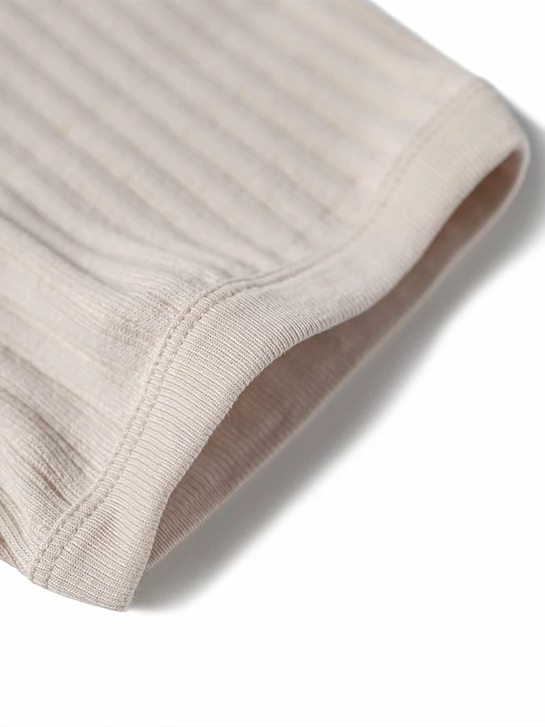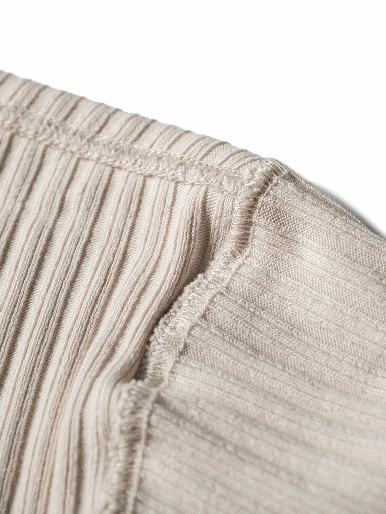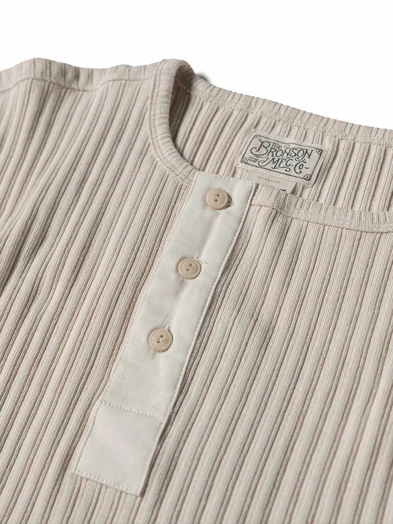 This Henley T-shirt is made of a unique wale ribbed cotton fabric. The fabric has excellent ductility, It’s soft-touch and is comfortable to wear, but the elasticity of the fabric is not tight. After wearing it for some time, it will feel roomier and return to normal after washing. This T-shirt has been garment washed, so it will not shrink after washing.