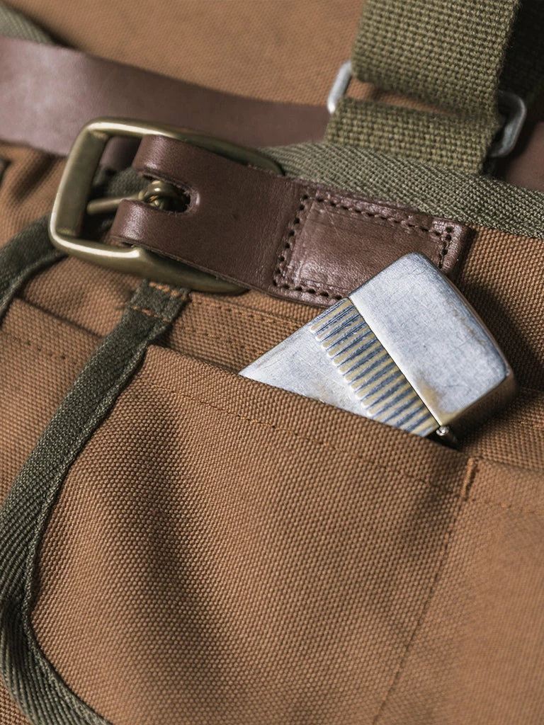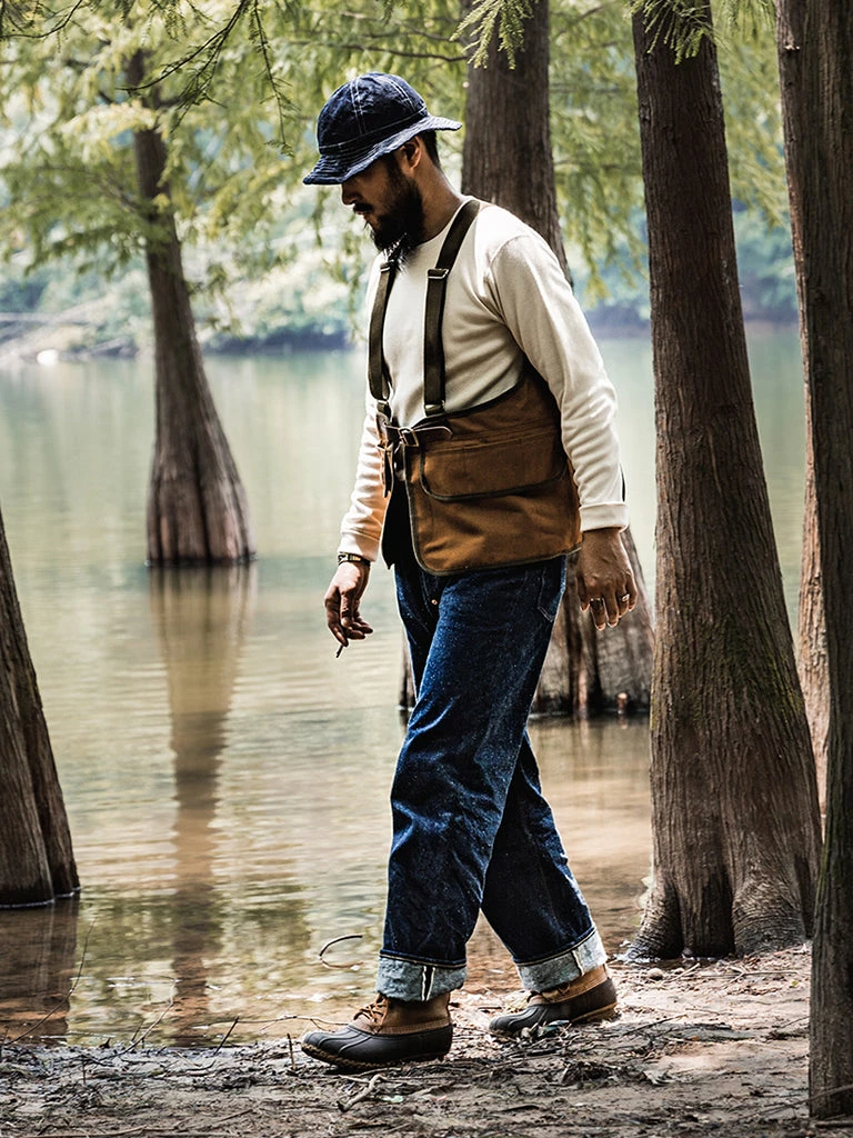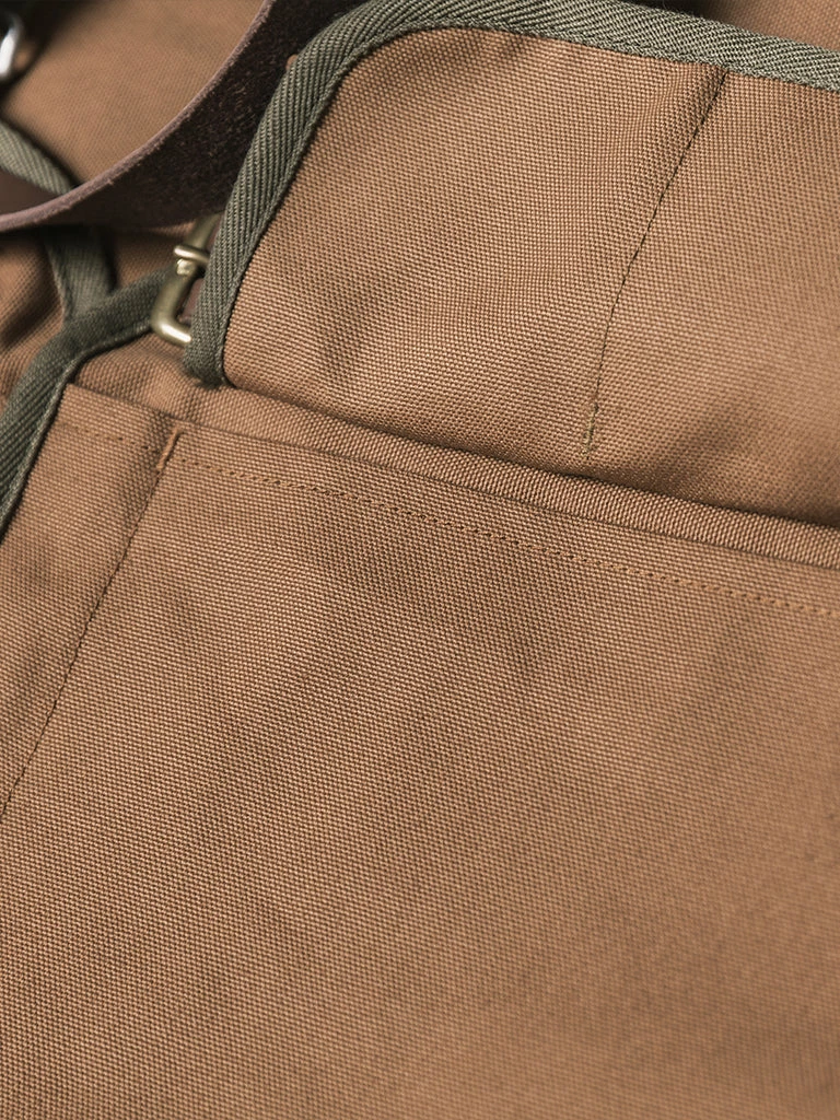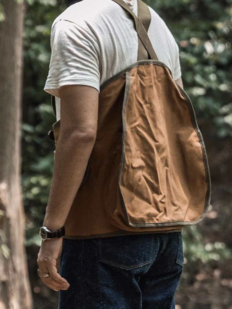 Our canvas hunting vest is also based on products in this period. The main part is made of yellow heavyweight canvas. The edges are covered with military green knitted fabric, matching the shoulder straps that can be adjusted in length to meet different outdoor needs.