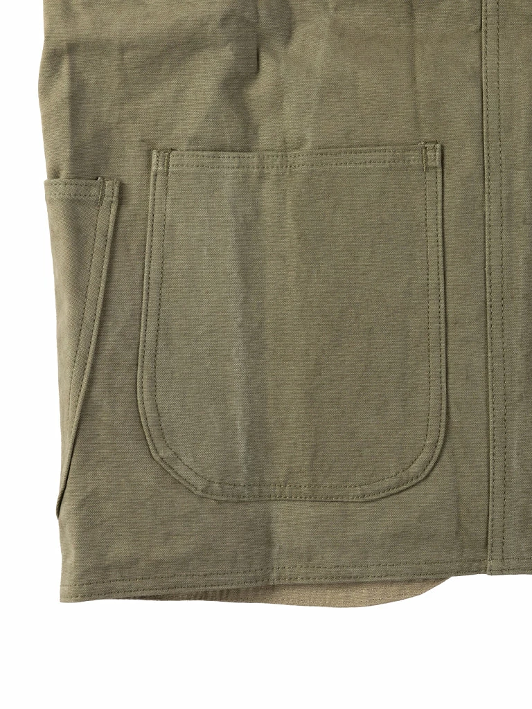 The prototype of this vest is taken from the 1930’s Hunting Vest. This vest is made of heavyweight 16.5 oz canvas. It has a half-curved pocket called “Game Pocket”. It is a hidden mezzanine, which can be used as a storage bag for daily use and is readily available, not easy to lose things. There are two pockets on the back for easy access to items. A horizontal strap is installed above the chest to fix the fishing rod and hook. In addition to being used by hunters and fishers, it was once a classic middle-class outdoor costume.