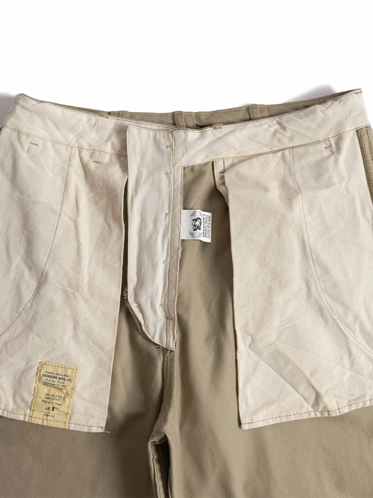 On August 11, 1937, the US Army released khaki pants with the military code number of [spec.no.6-254]. These pants have three pockets in the front (one slant pocket for each side, and one watch pocket) and two hip pockets in the back. In the fall of 1942, the military code number of [spec.no.6-254] contract ended.