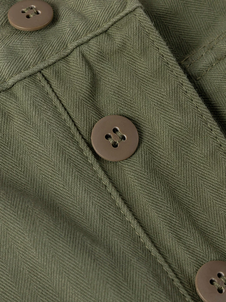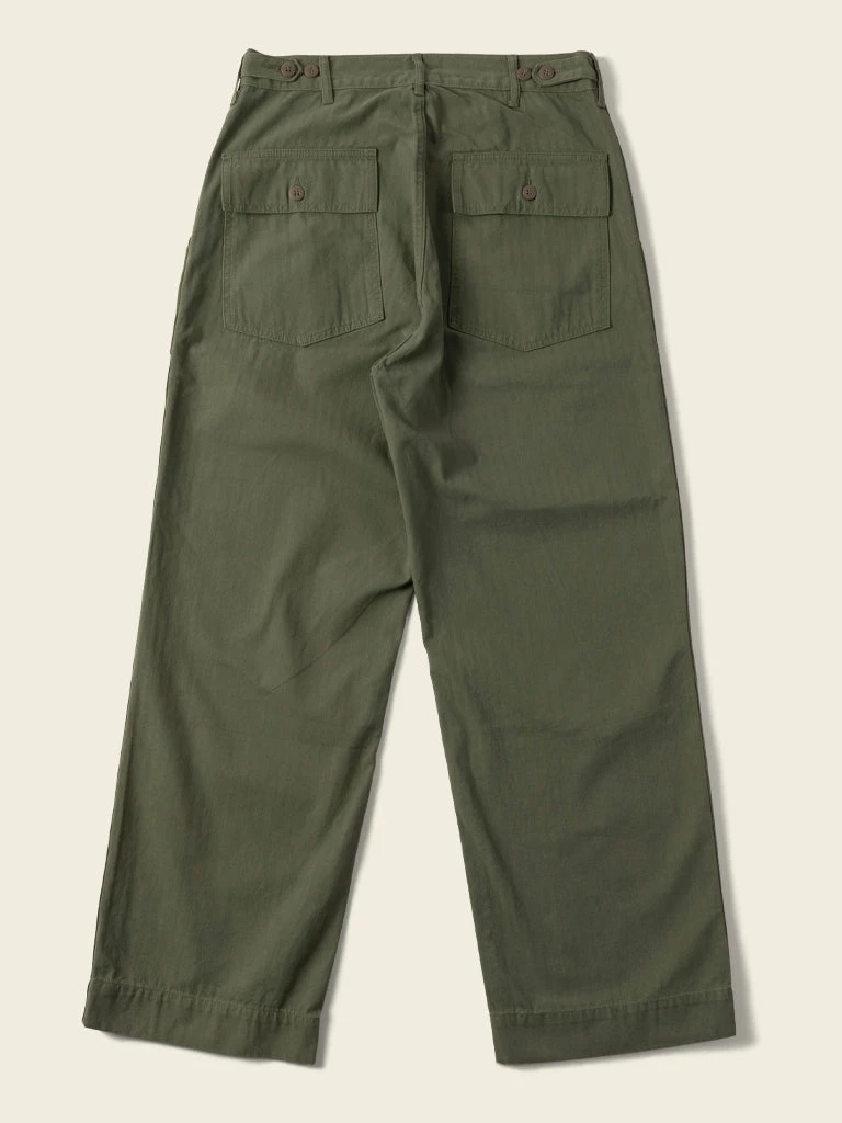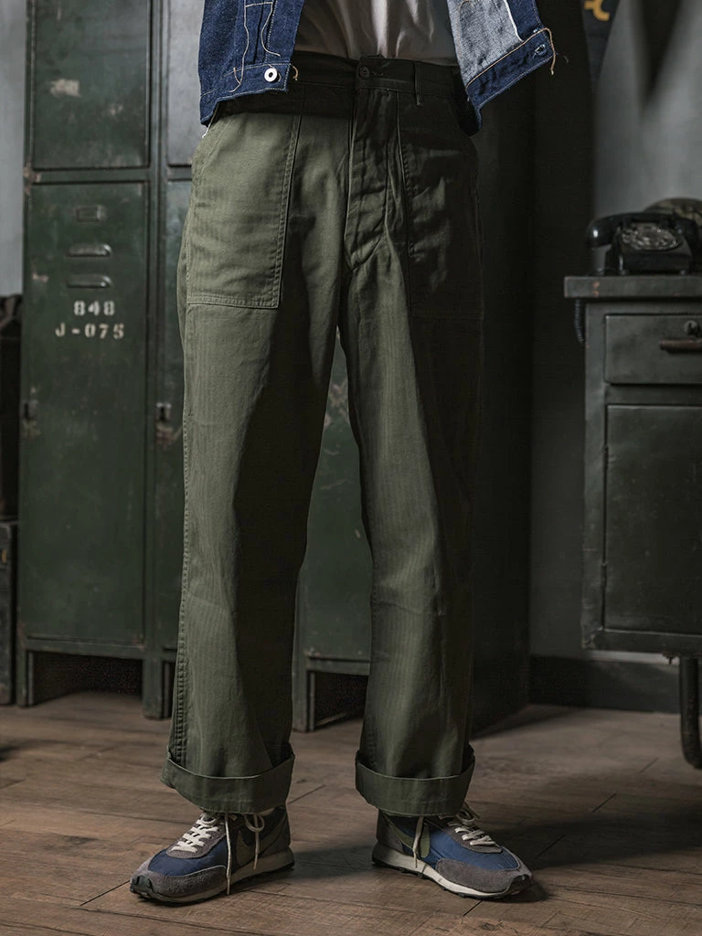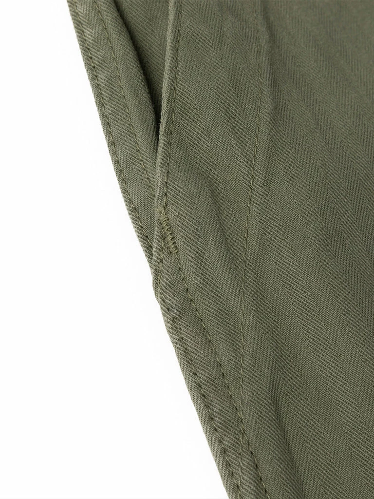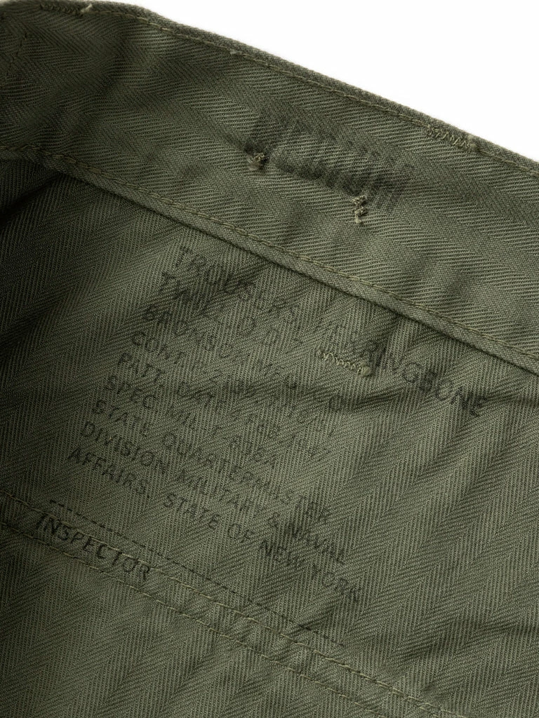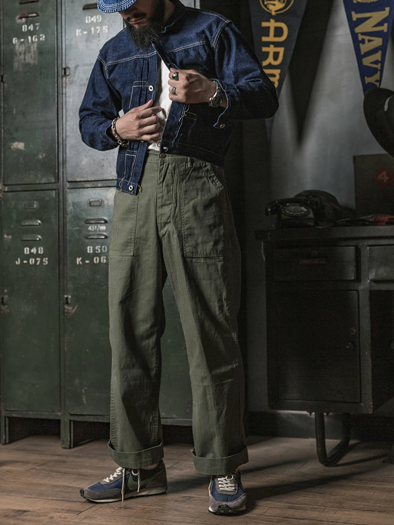 The 838A Fatigue Utility Pants were issued in 1947, its color number is OD7, used Herringbone twill (HBT) fabric widely used during world war II, with brown urea buttons or 13 stars buttons. The 838A Fatigue Utility Pants are the OG107 Fatigue Utility Pants prototypes, and their design is precisely the same except for differences between fabric and color. At the same time, there is an HBT jacket (shirt) and 838 pants to match with, and This jacket is the prototype of the OG107 long-sleeved jacket.