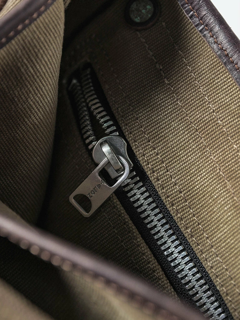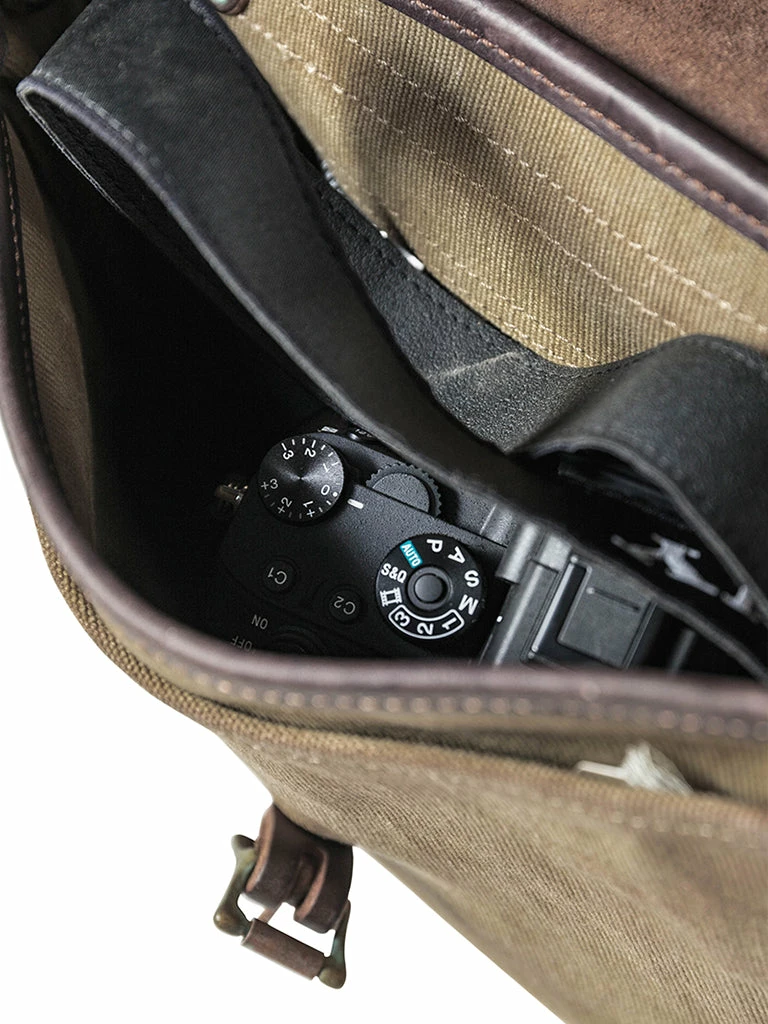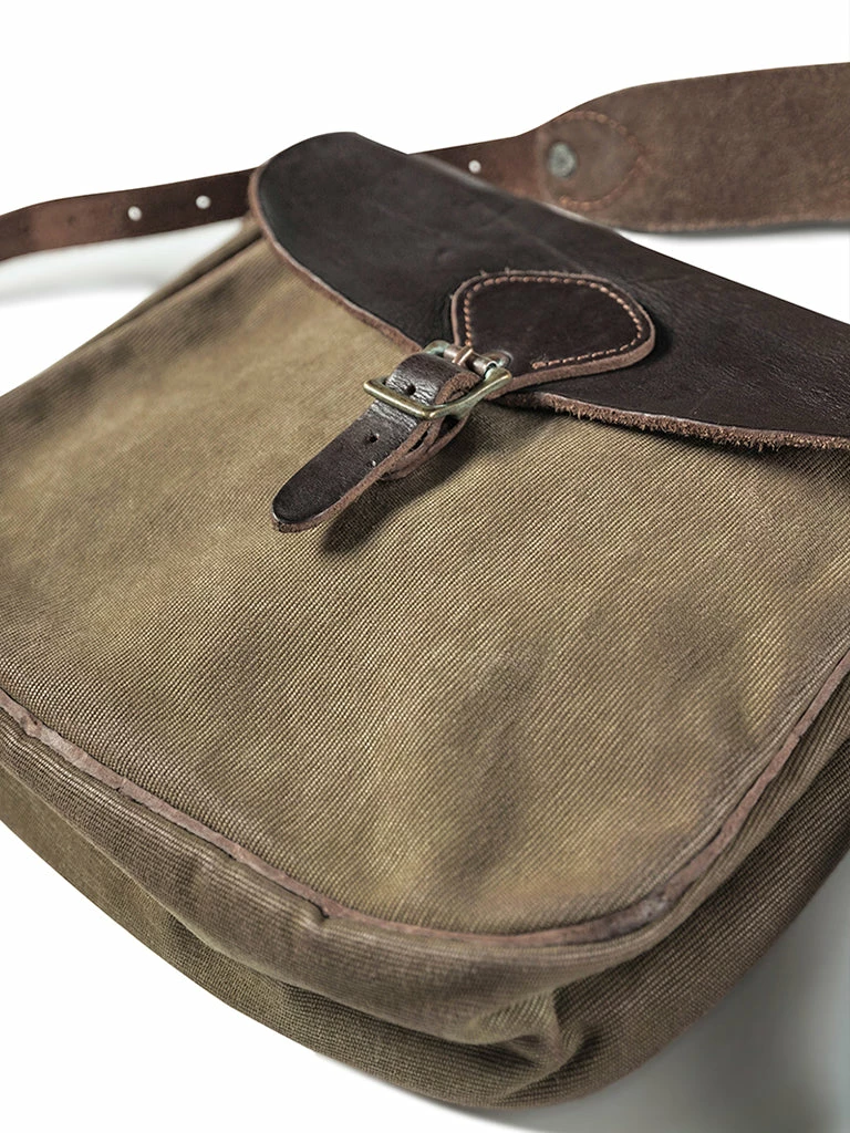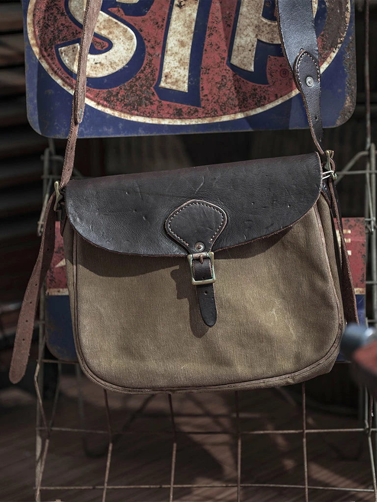 Based on a World War I US Army bag. It’s medium-sized, Italian imported 4mm vegetable tanning leather as the bag flap and strap part, encrypted 25 oz canvas for the main body, after the production, the whole bag was washed with the vintage wash. After a long time of use, it will become more beautiful.