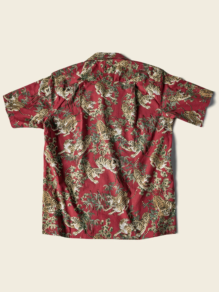 This Hawaiian shirt features Japanese ukiyo-e tiger & bamboo pattern prints.