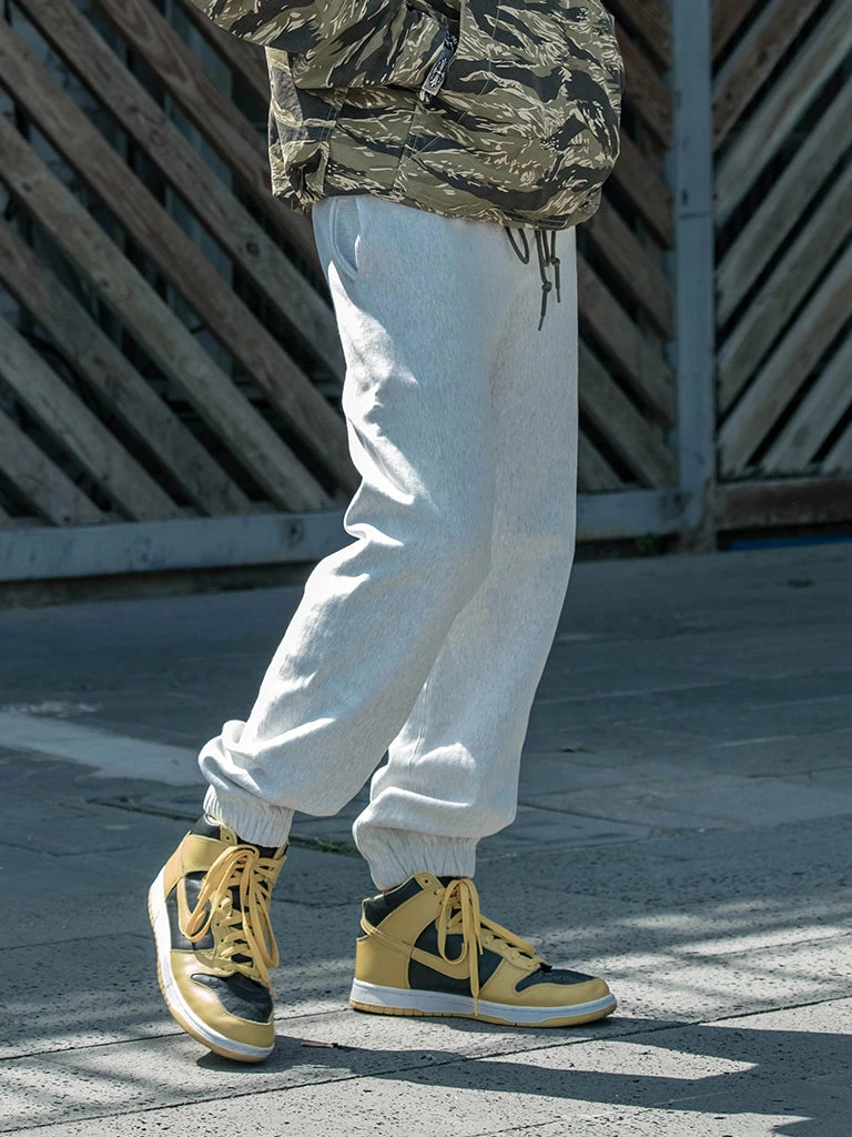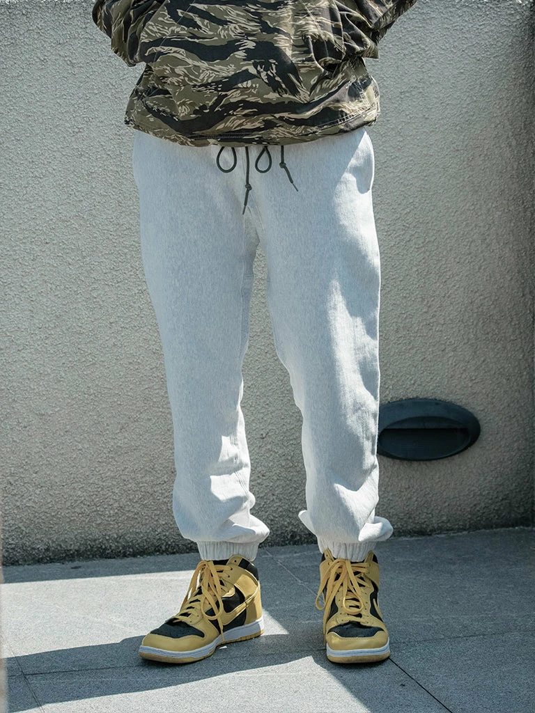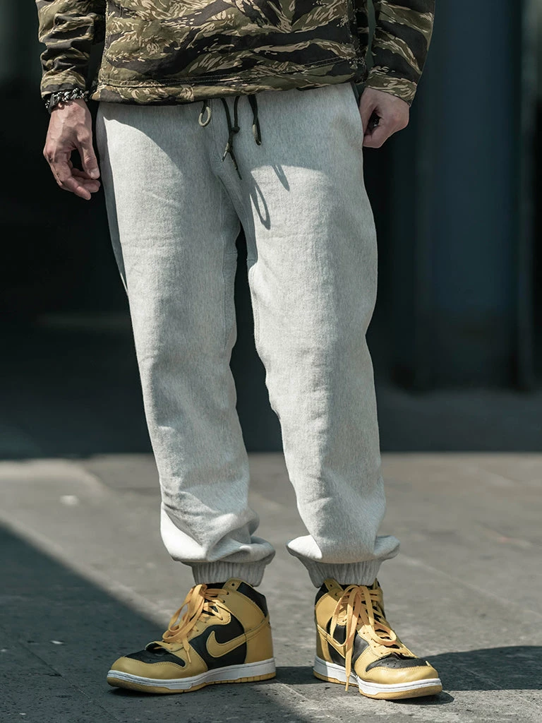 Based on vintage 1950’s sweatpants, they feature a reverse weave cut with threaded patches under the crotch.