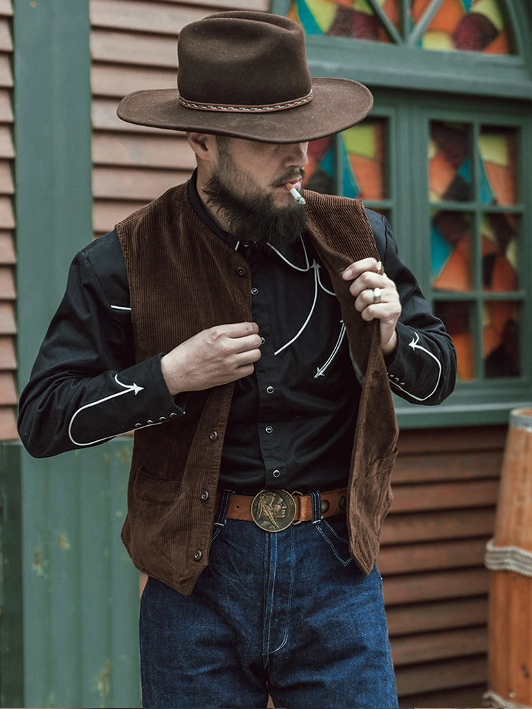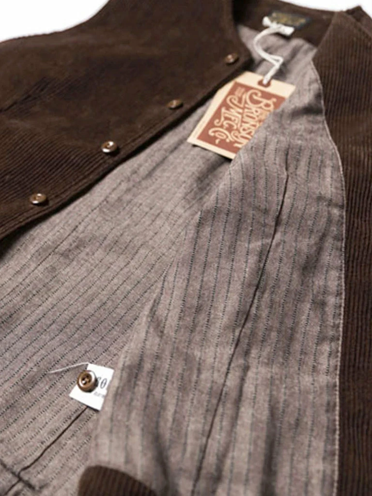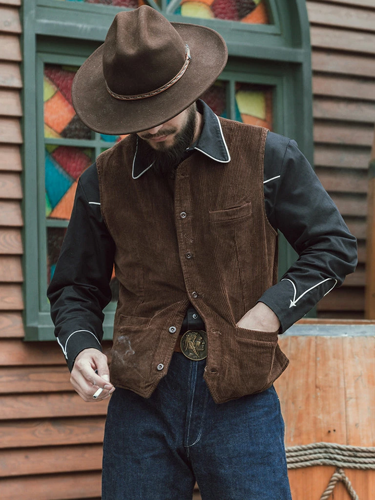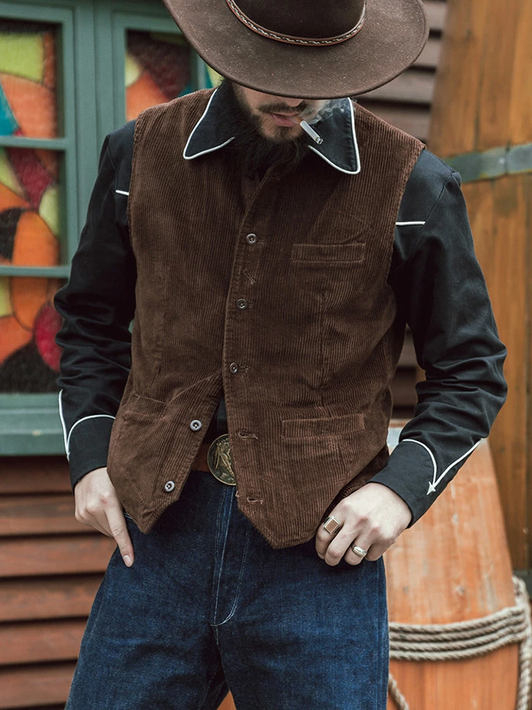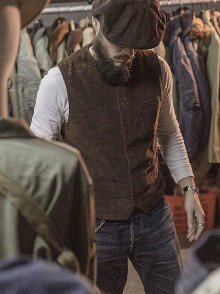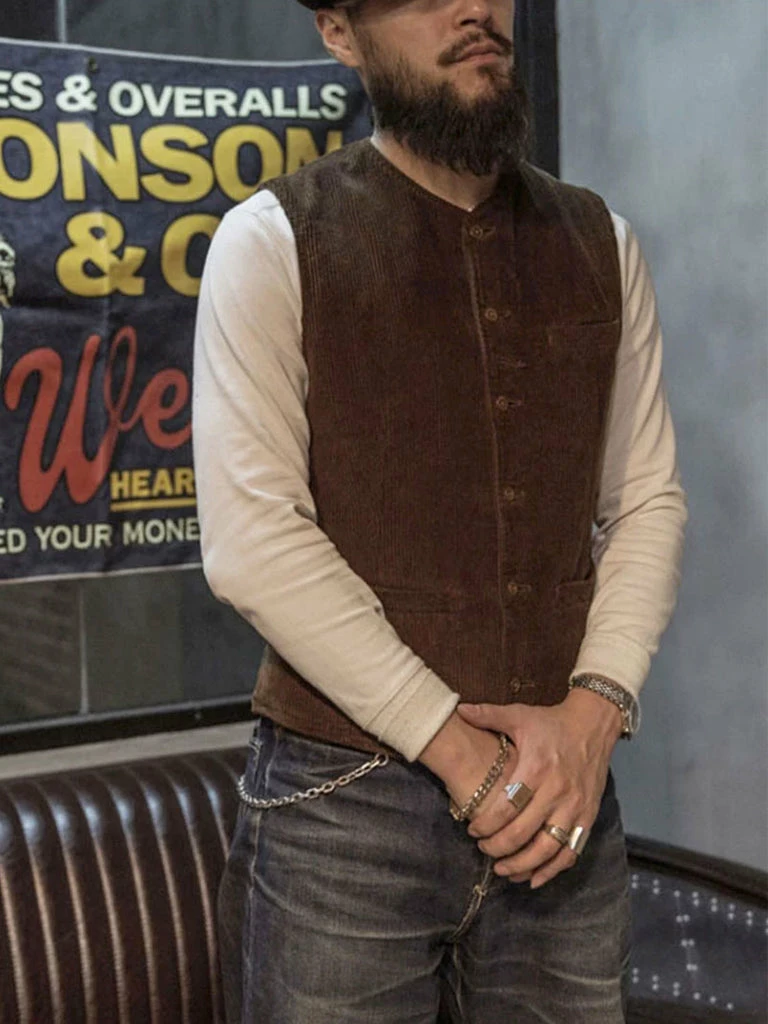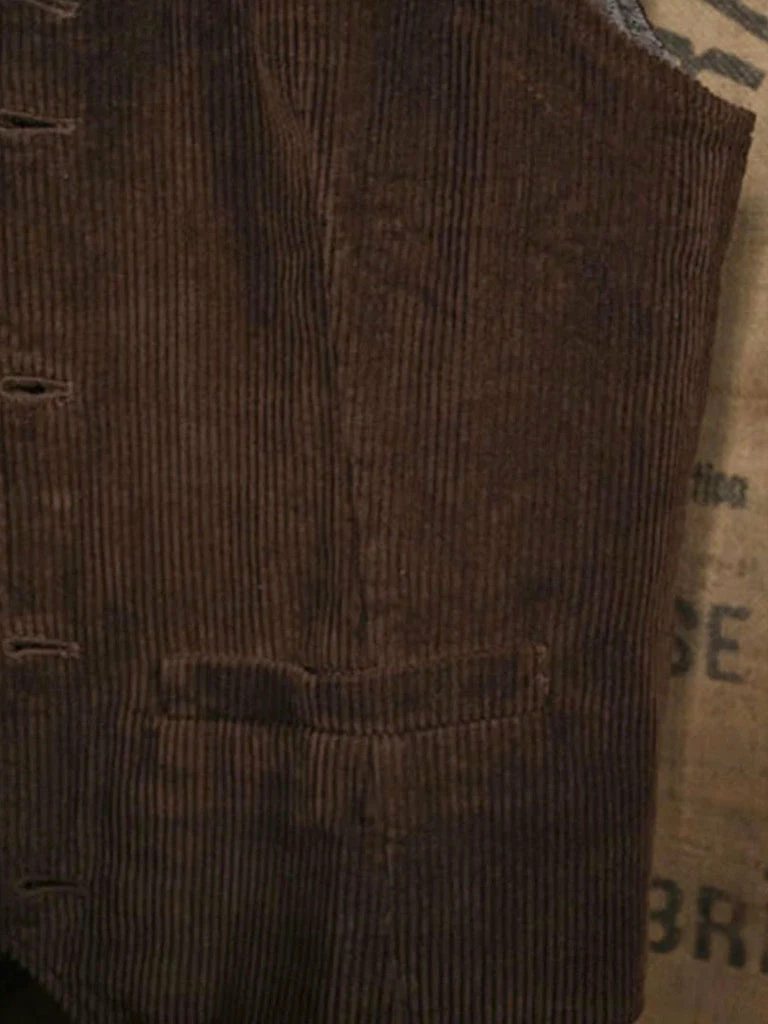 This corduroy vest is based on the European immigrant vest of the 1910s. It reproduces the elegance of early casual wear. It adopts the design of the old-time vest with three pockets, the retro stripe linen/cotton fabric lining, and the waistline is just right. There is no BUCKLE on the back, so it is convenient to match other close-fitting jackets. The overall tailoring is fitted. You can wear it alone or with a coat.
