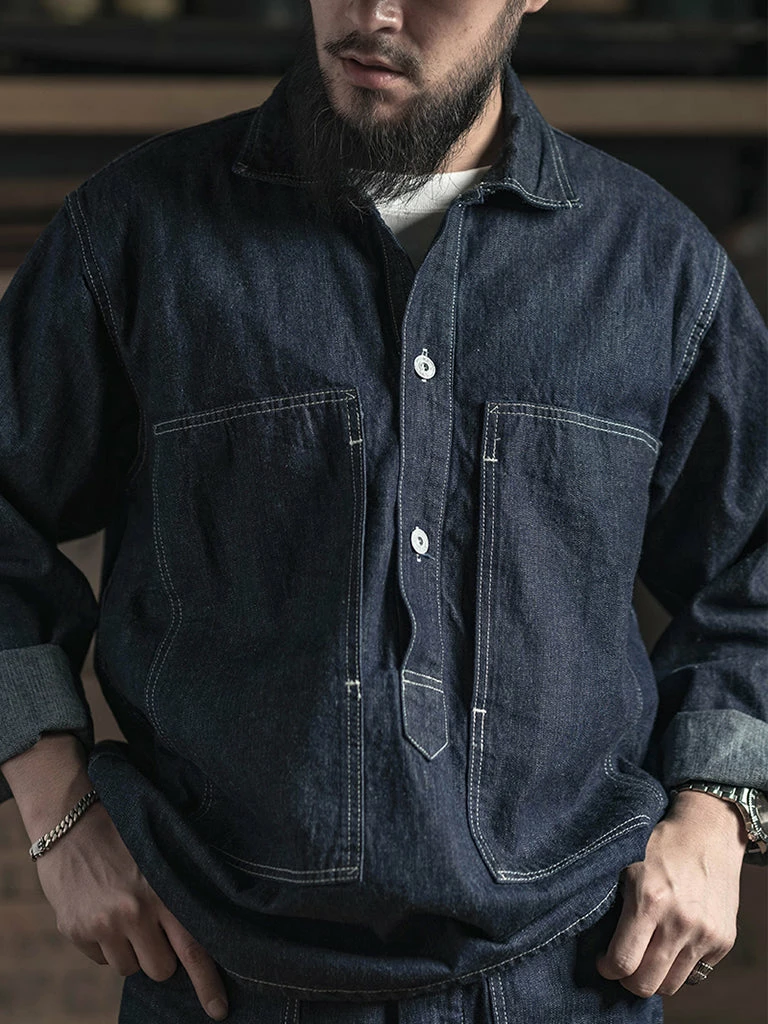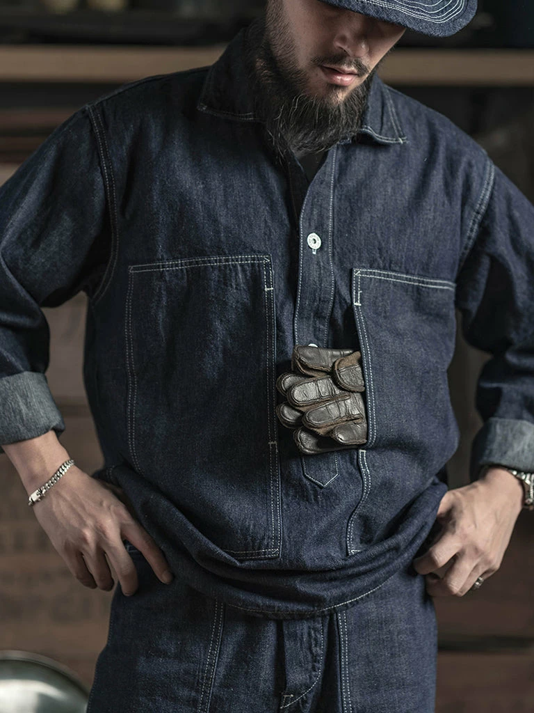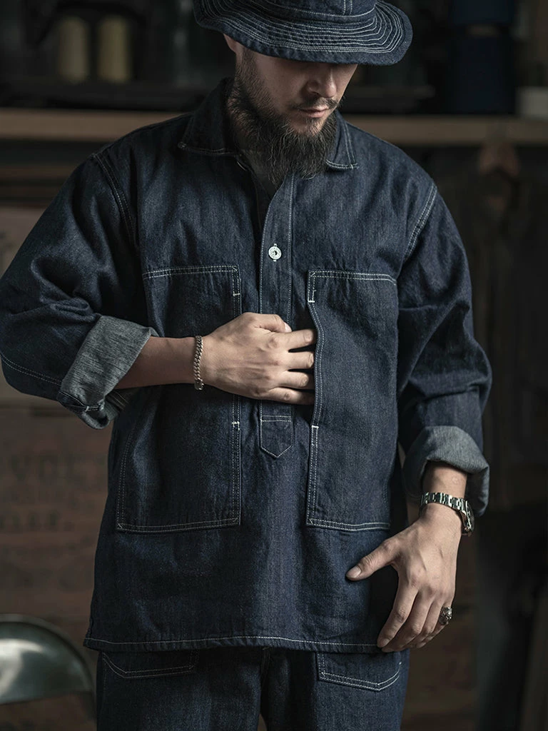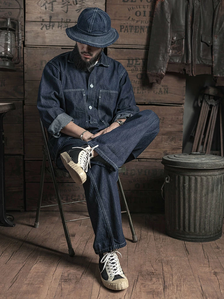It’s a reproduction of the 1935 US Army fatigue jumper. The most used workwear during the work of the Civilian Conservation Corps. It’s a reproduction of the 1935 US Army fatigue jumper. It has two big pockets at the chest for easy carrying and retrieving of items. It’s a loose cut for easy wearing and taking off. This fatigue jumper is combined with a fatigue dungaree and a round brim hat(Daisy Mae Hat) to make up a set of fatigue uniforms.