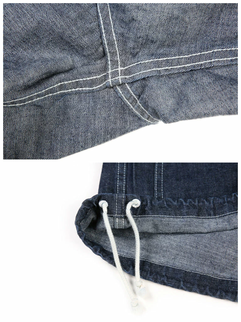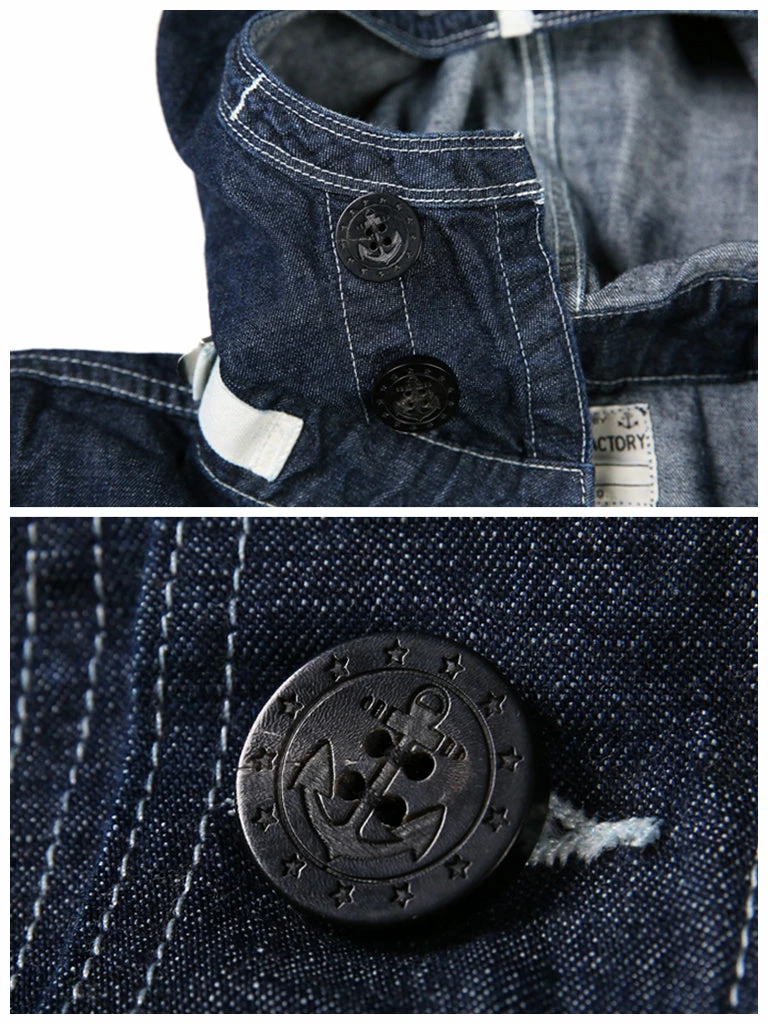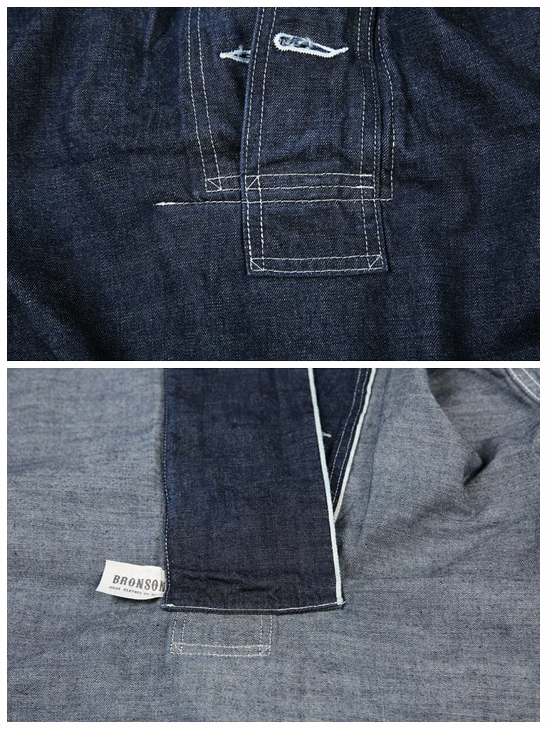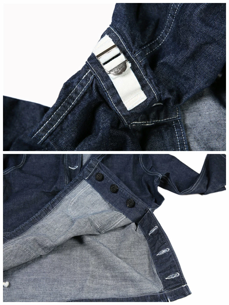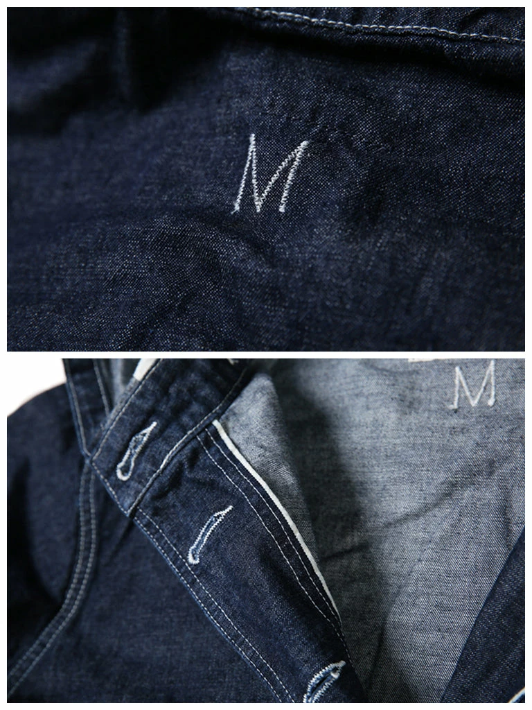 During World War II, US Navy used this Gunner Smock. It is made of plain weave selvedge denim production, and a double front placket keeps the dust from getting inside clothes because it had to wrap the protective helmet, there was a big hat and tightened adjusting buttons on both sides of the cap. There are two patch pockets on the front to place small objects.