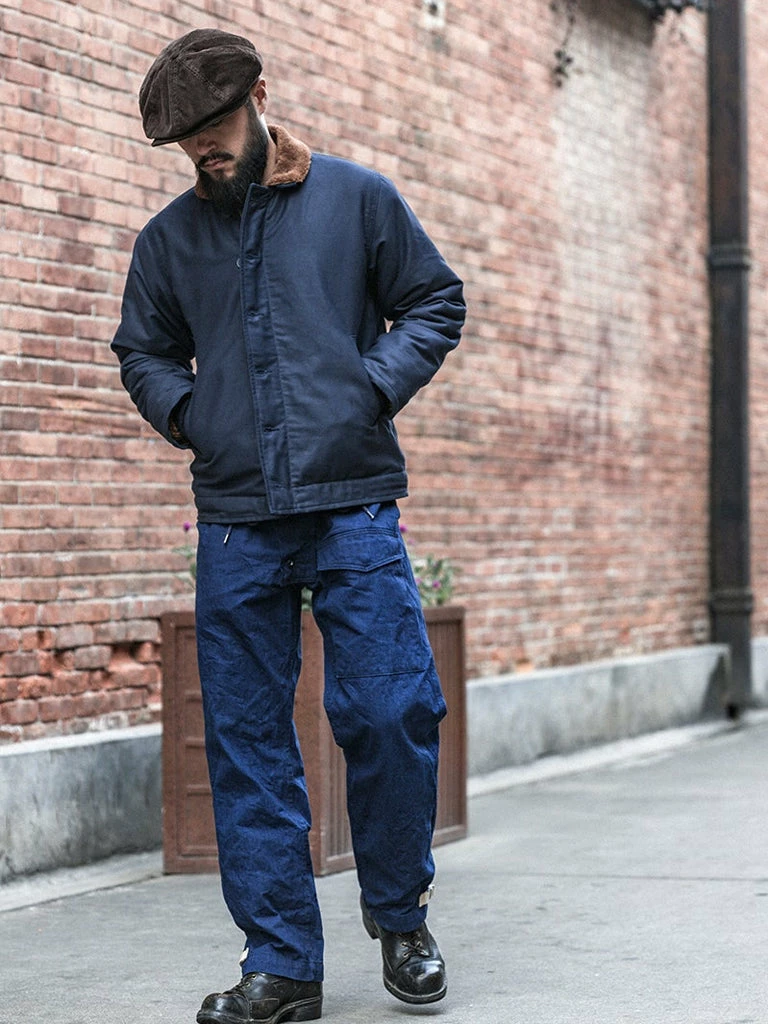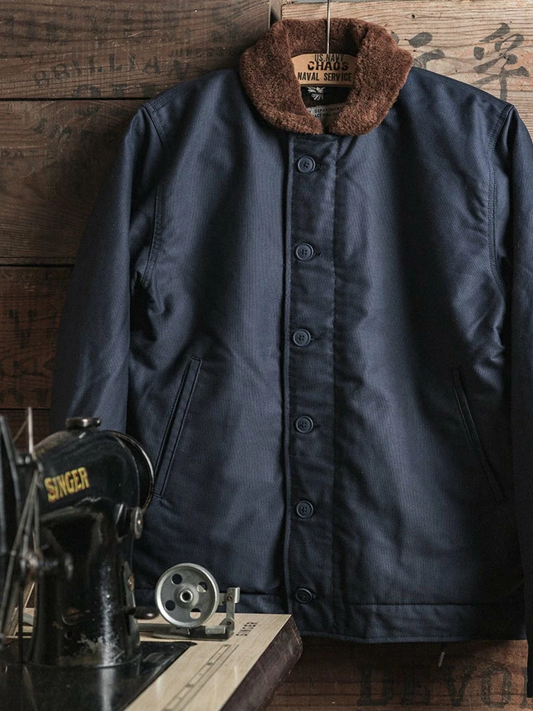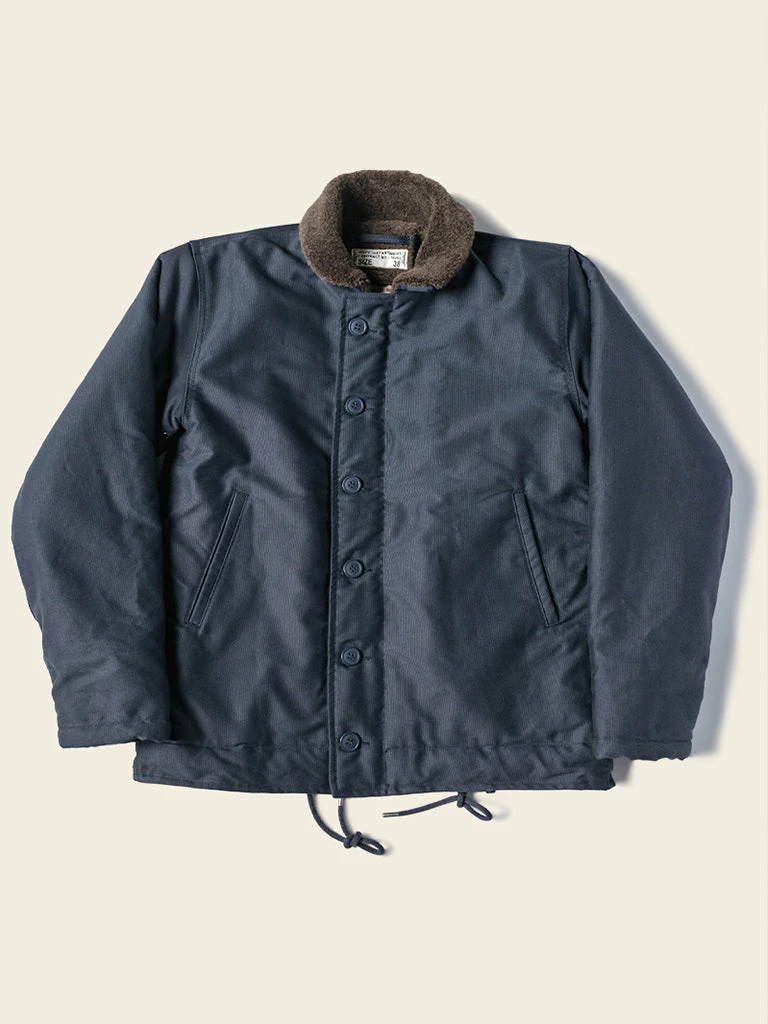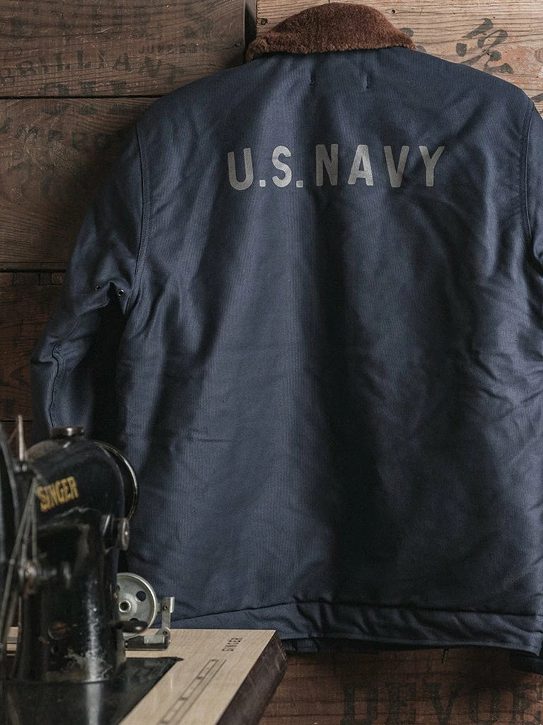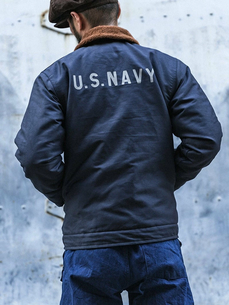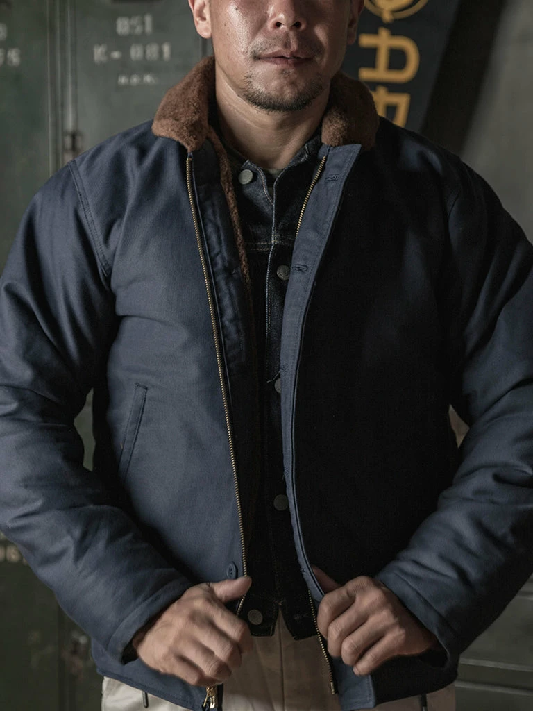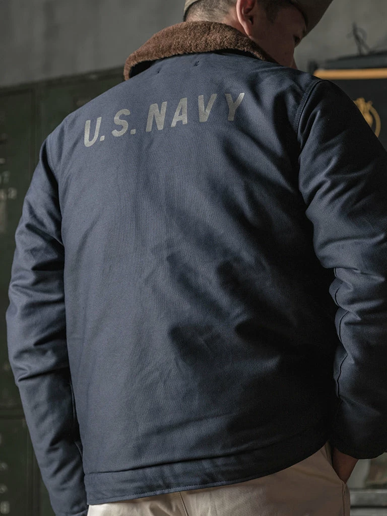 The aircraft carrier deck crew wore N-1 deck jackets during World War II and the Korean War. The thick cotton shell and alpaca or wool lining gave the deck crew the needed warmth and protection from the elements during extreme cold weather conditions. The initial series was produced in Navy blue to symbolize the U.S. Navy before it eventually changed to Khaki.