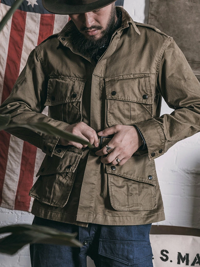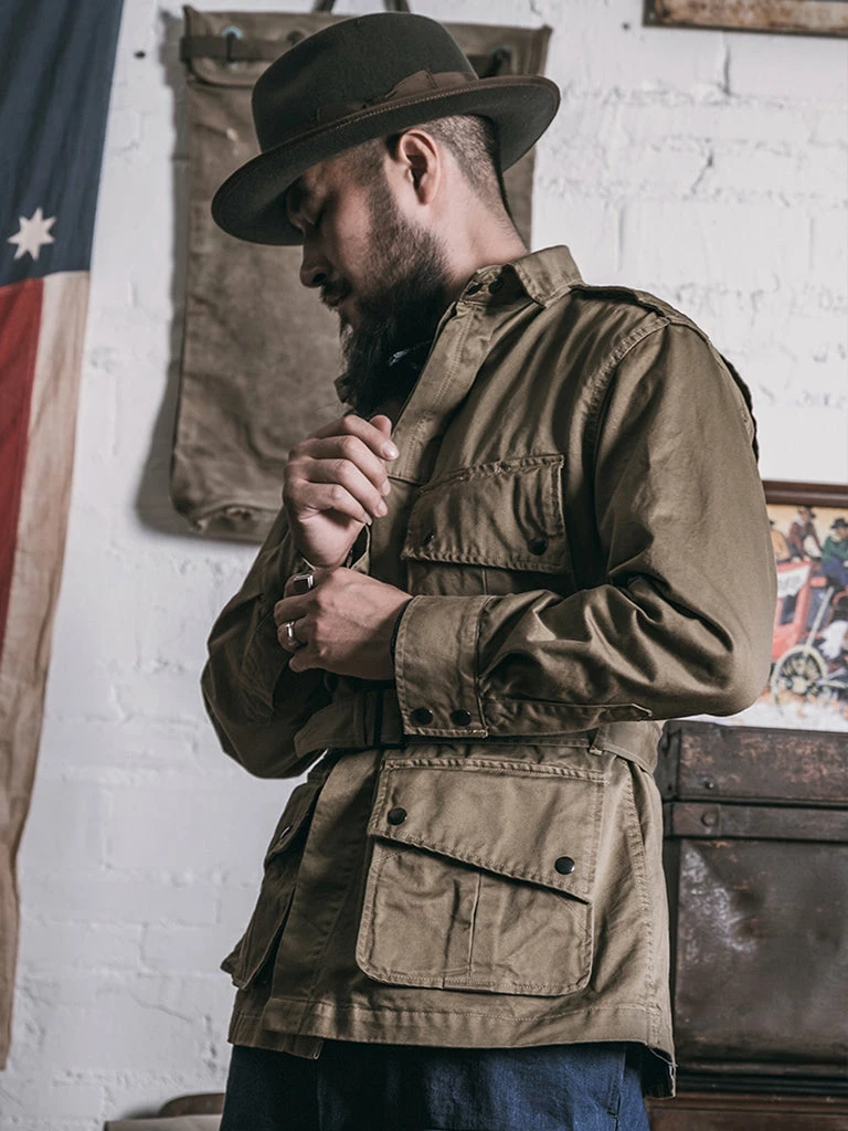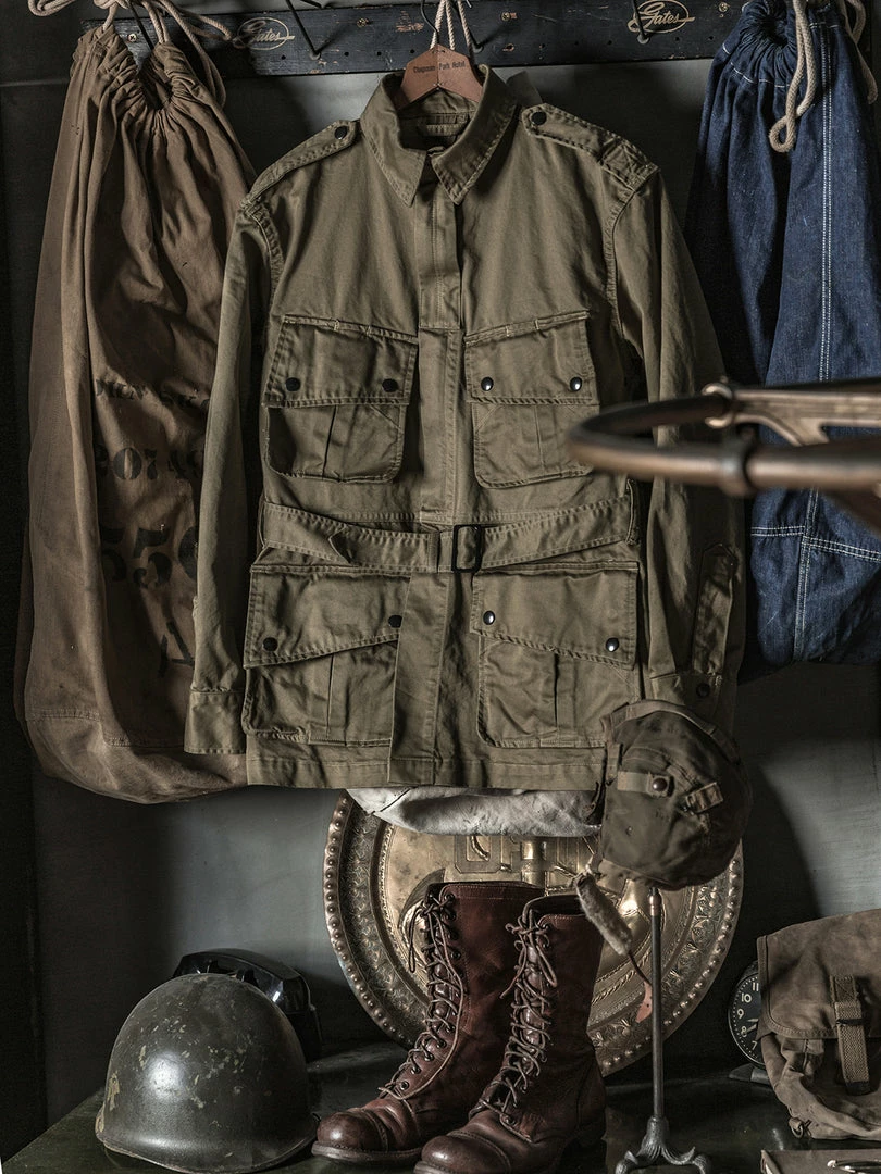 The M-42 field jacket was mostly worn by Paratroops assigned to Airborne units. The M-42 field jacket was eventually phased out in favor of the new M-1943 Uniform which was a darker green(OD7). Despite this, various individuals chose to keep their M-42 field jackets in order to show their veteran status.