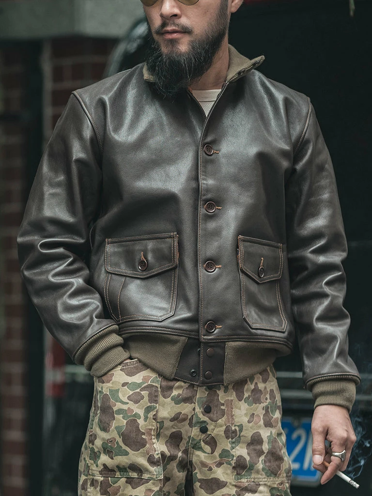 The Type A-1 Flight Jacket is the predecessor of Type A-2 Flight Jacket, began to serve in 1927, it is the ancestor of all flight jacket, the army pilots and navy pilots had gm. It is a single-layer jacket, mainly used in the spring and autumn and summer. It is also the first jacket to use the ribbing cuff for military clothing. The first year of the Type A-1 Flight Jacket was mainly made of goatskin, and with the advent of the Type A-2 Flight Jacket in the 1930s, it was gradually replaced by the more practical Type A-2 Flight Jacket. Still, it was also used in small quantities during World War II and was not officially retired until 1944.