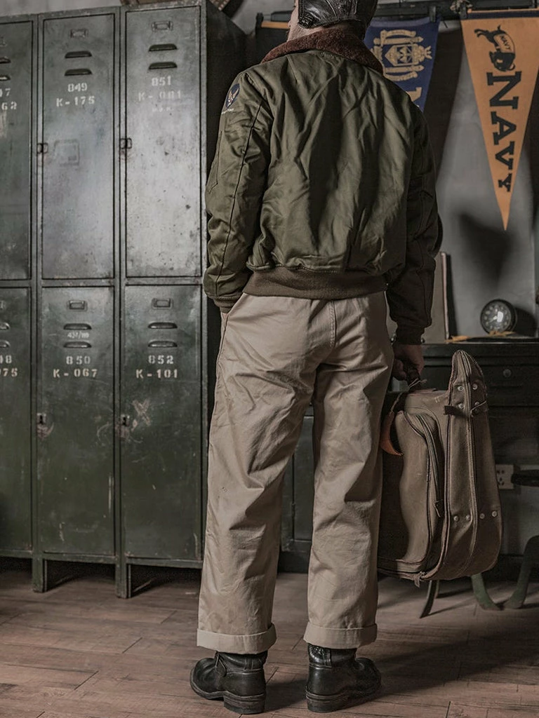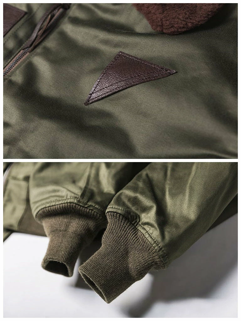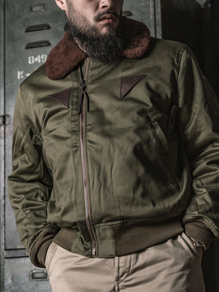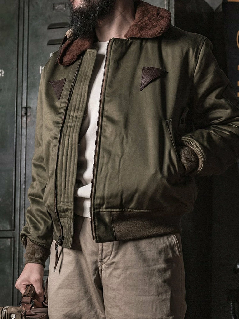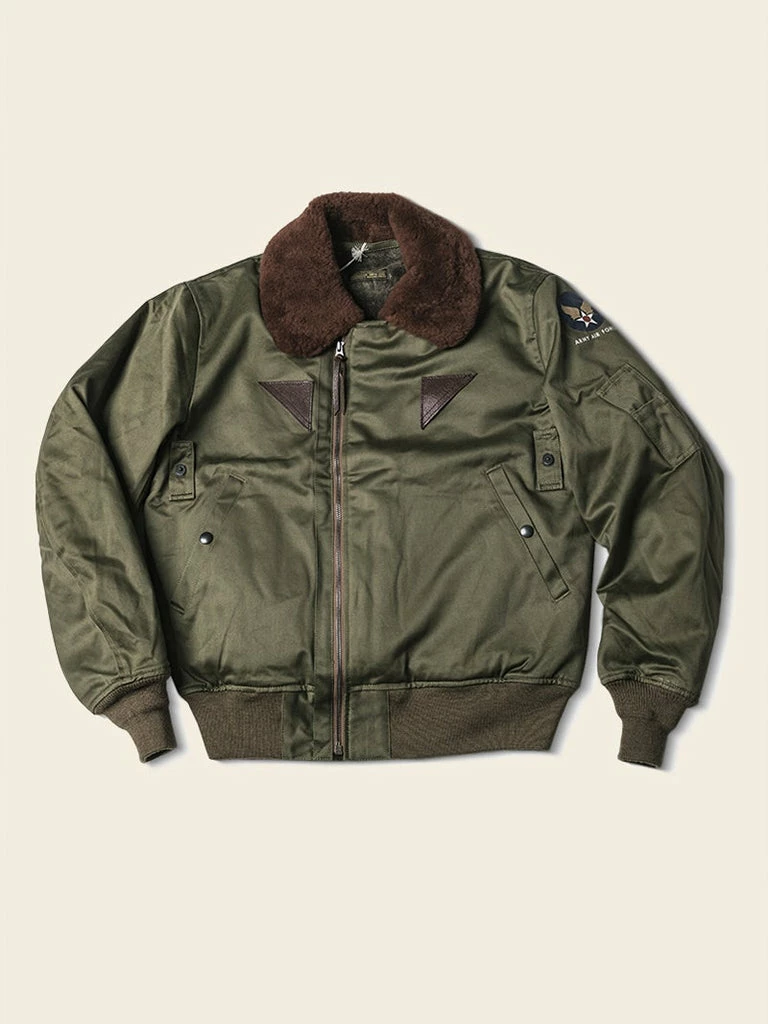 The B-15A is a very distinctive part of the B-15 series. chest of two pieces of cortex triangle let you’ll never forget, B-15A was made of cotton cloth, and later models began to use nylon cloth, The B-15 series features a larger collar than the B-10, convenient stand collars warm head, The zipper is positioned to the right of the centerline, a unique feature of the B-15 and B-15A.