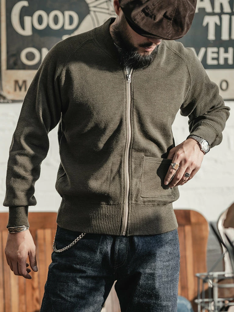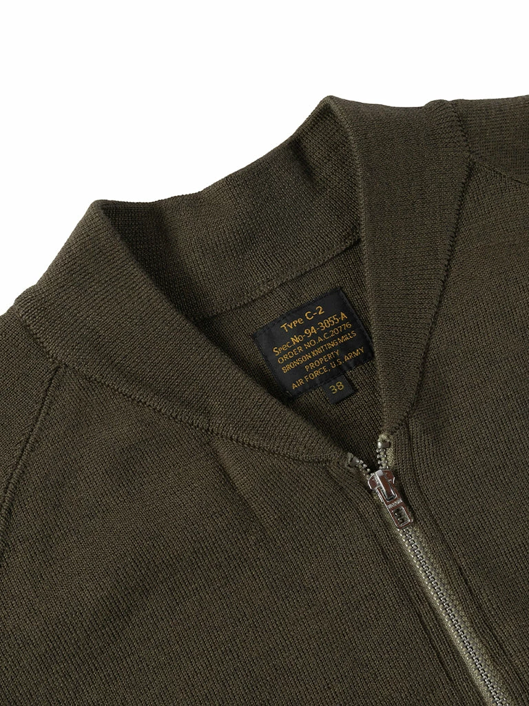 During WWII, the C-2 was an inner-wearing sweater for the mid-temperature or cold zones. It can be worn inside aeronautical flight jackets such as A-2, B-3, B-6. C-2 sweater is not used in large quantities. The C-2 sweater is not too thick, and the wear and tear are very high. The collections that can be preserved so far are rare and of high value.
