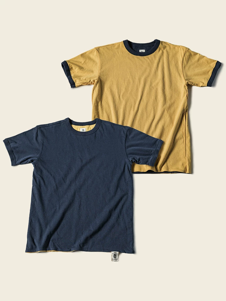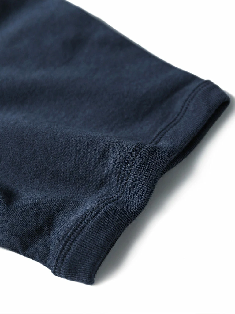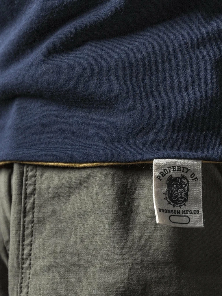 This t-shirt is a reproduction of an early WWII version of the UDT Reversible T-shirt, with a more well-fitted tailoring, rib-knit cuffs, and each side has a size cloth label. These are details that later versions don’t have.