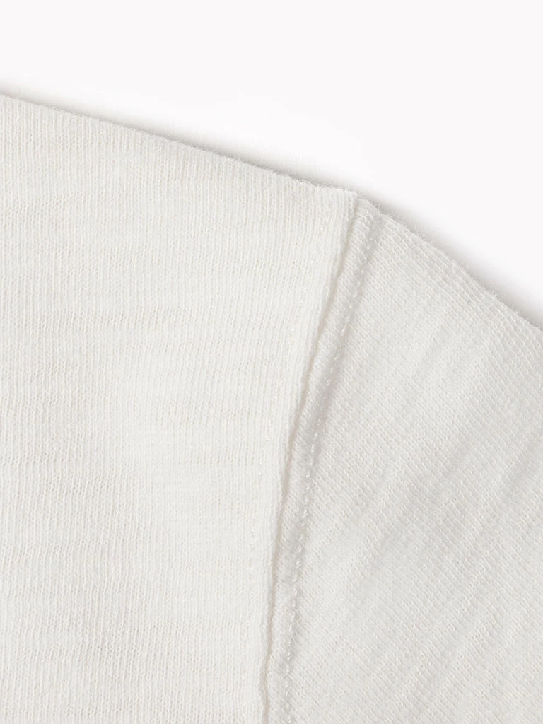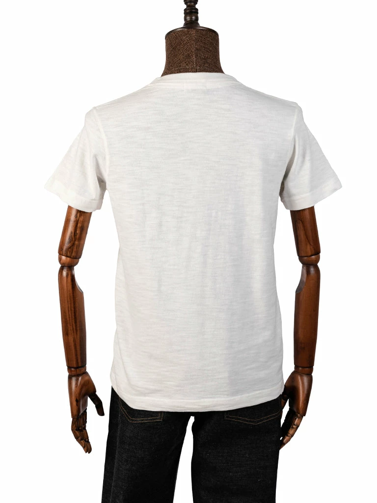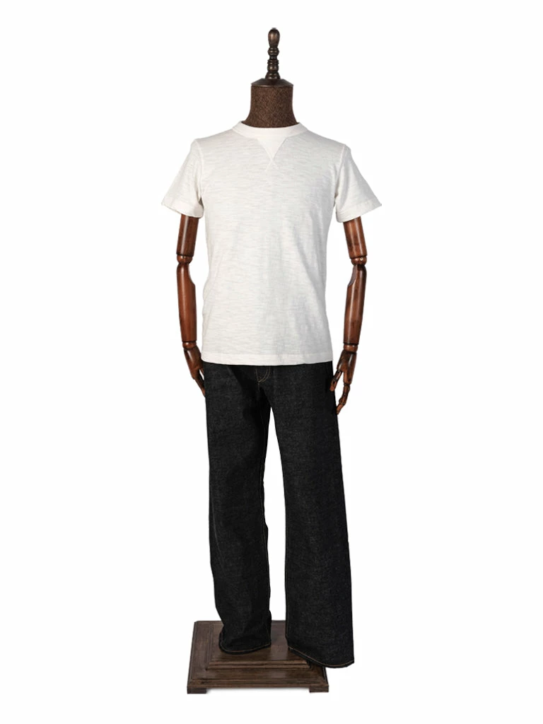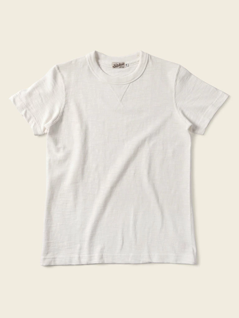 This t-shirt is based on a vintage 1950 American athletic t-shirt design. It is made of US cotton, tubular, no seam, and is finished with a V on the neckband for durability.