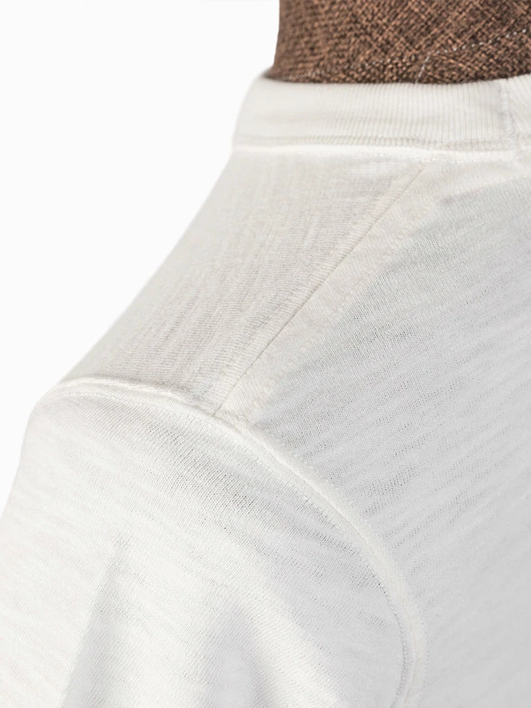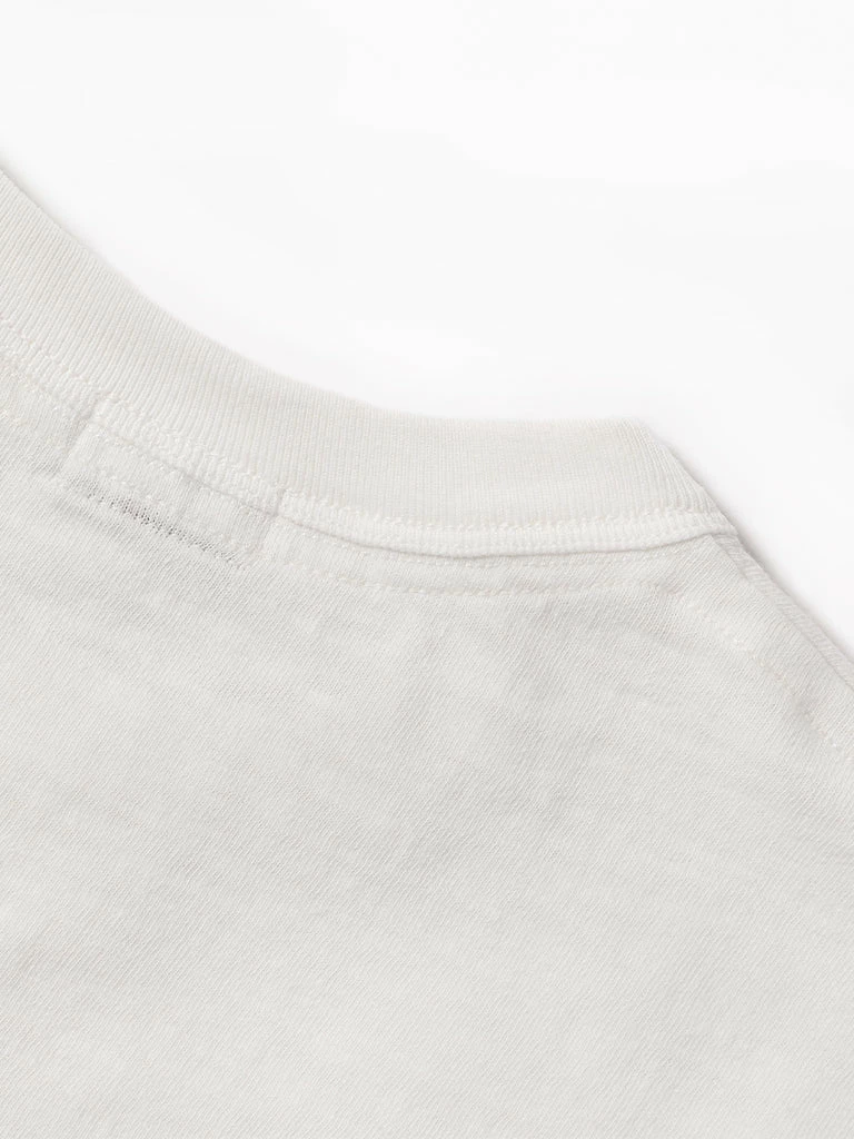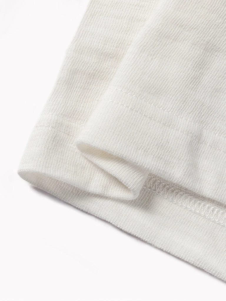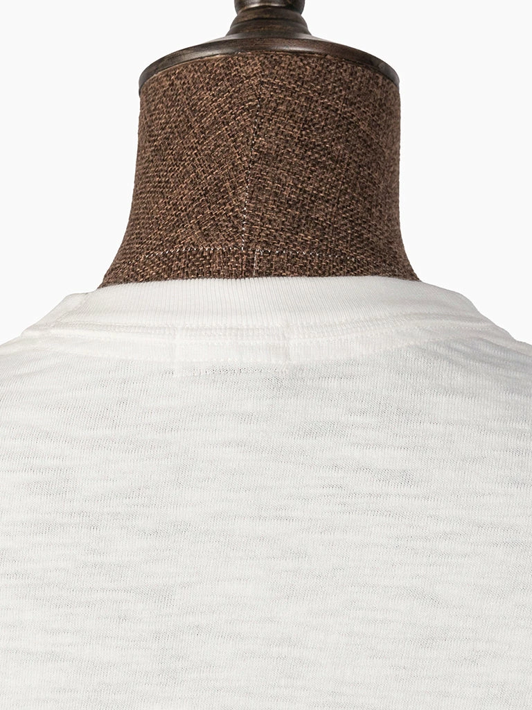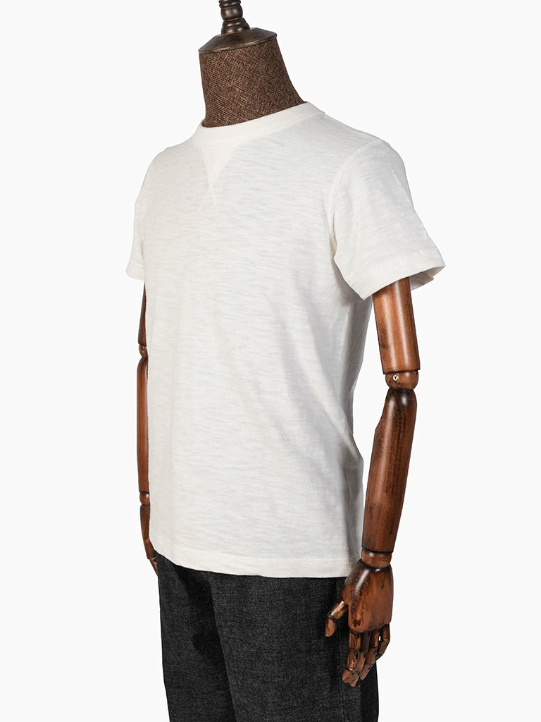 This t-shirt is based on a vintage 1950 American athletic t-shirt design. It is made of US cotton, tubular, no seam, and is finished with a V on the neckband for durability.