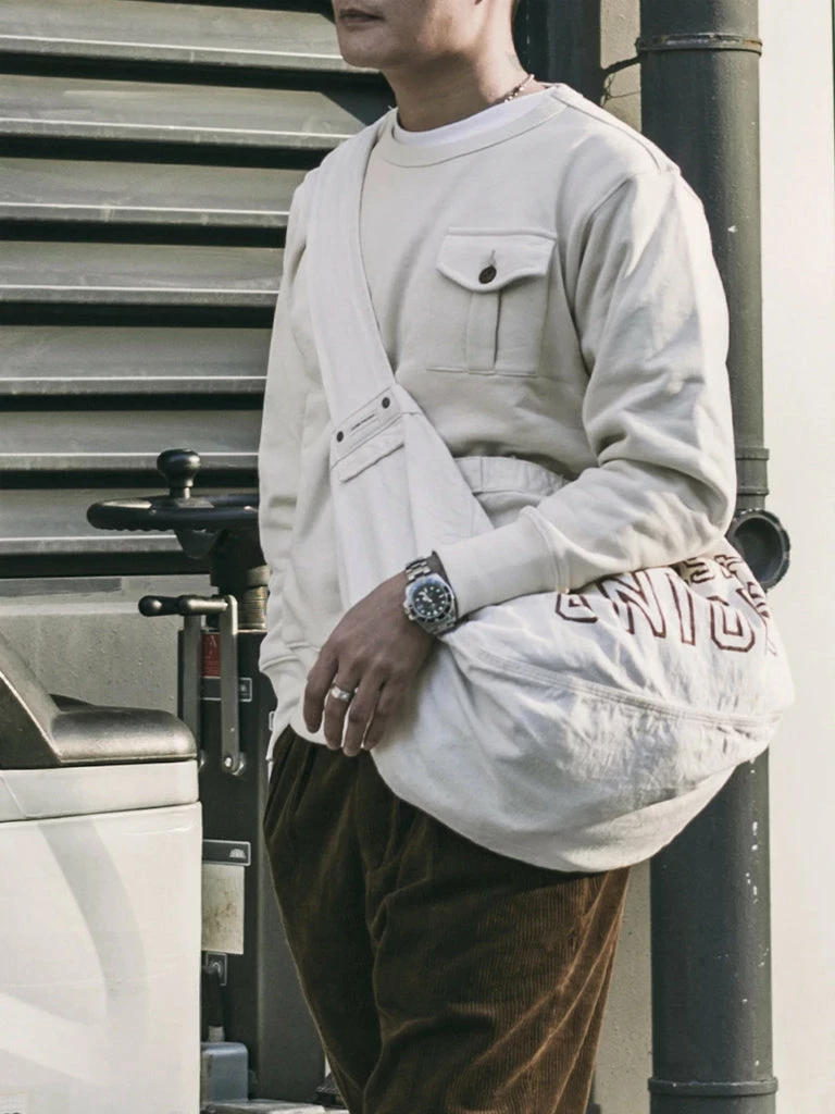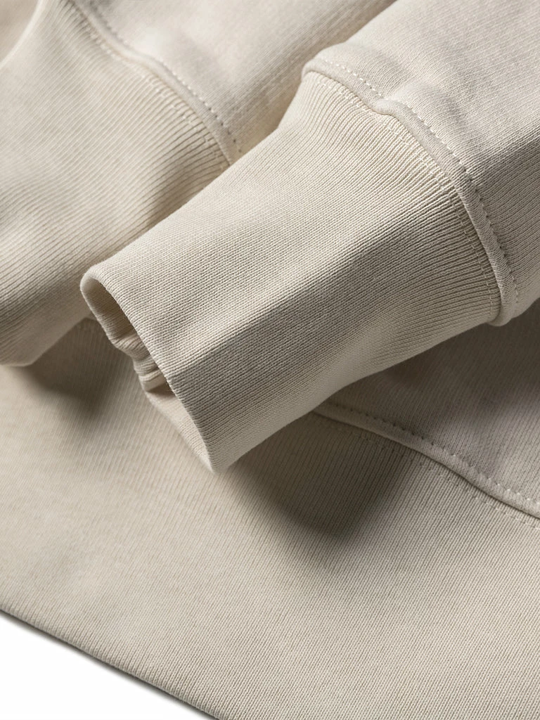 This sweatshirt is made of 17.5 oz terry cloth. It is soft, comfortable, has no static electricity, can be worn close to the skin, and has good elasticity. The sewing technology adopts the old-time classical sewing process: overlocking and then interlocking. Compared with an ordinary single overlock, it’s stronger and more beautiful. It can be worn outside in spring and autumn and can also be worn as a base in autumn and winter. It is available to choose khaki, black and white. Bring more possibilities for daily wear.