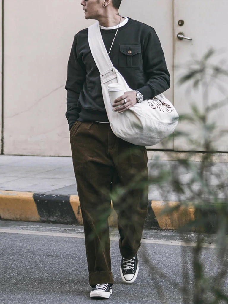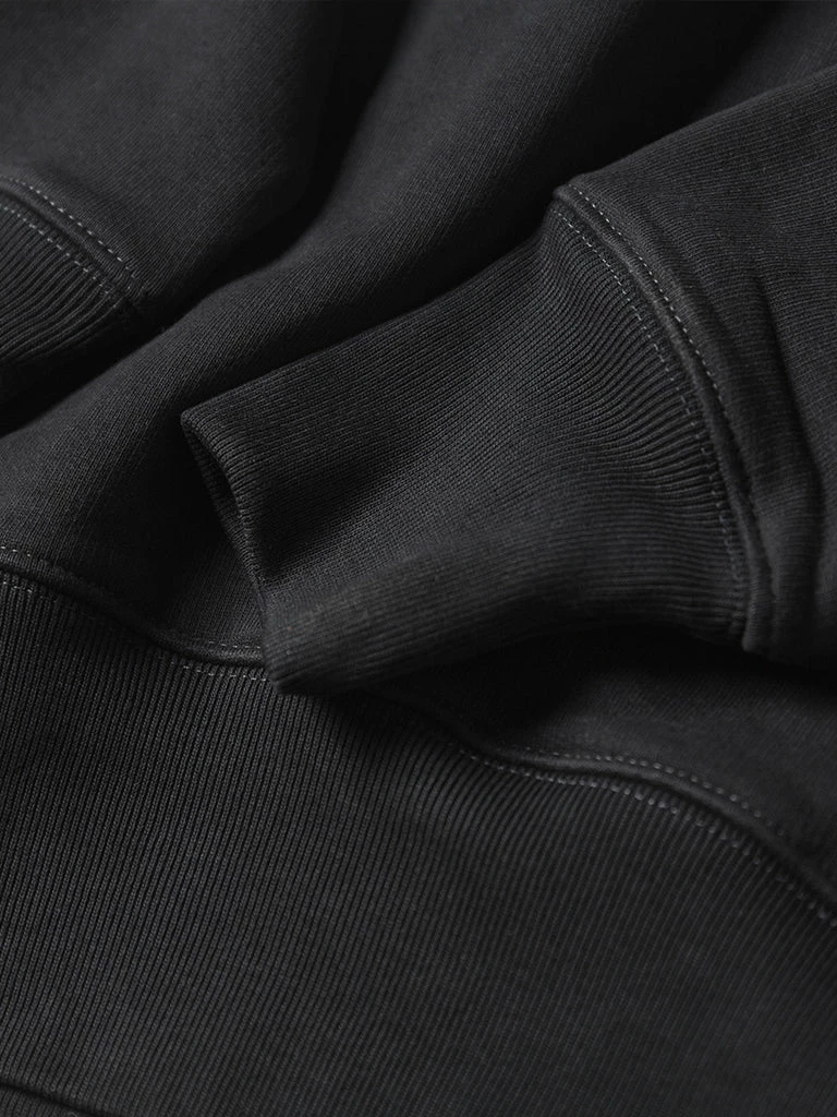 This sweatshirt is made of 17.5 oz Terry cloth. It is soft, comfortable, has no static electricity, can be worn close to the skin, and has good elasticity. The sewing technology adopts the old-time classical sewing process: overlocking and then interlocking. Compared with an ordinary single overlock, it’s stronger and more beautiful. It can be worn outside in spring and autumn and can also be worn as a base in autumn and winter. It is available to choose khaki, black and white. Bring more possibilities for daily wear.