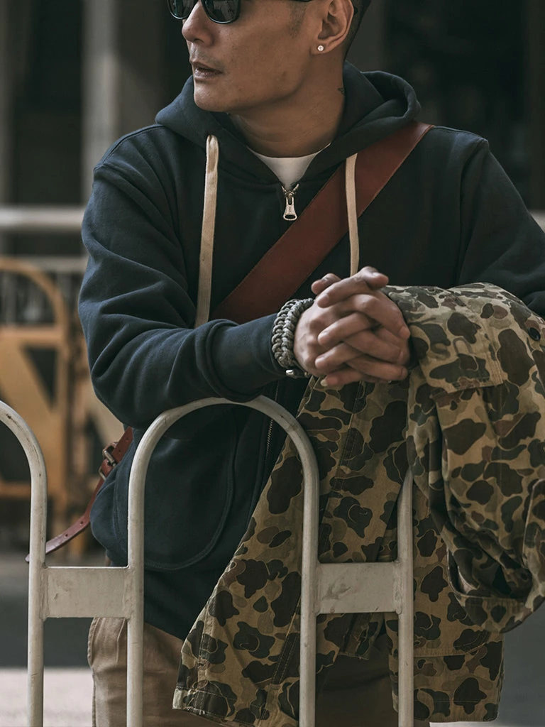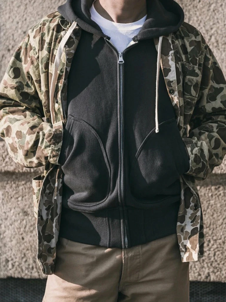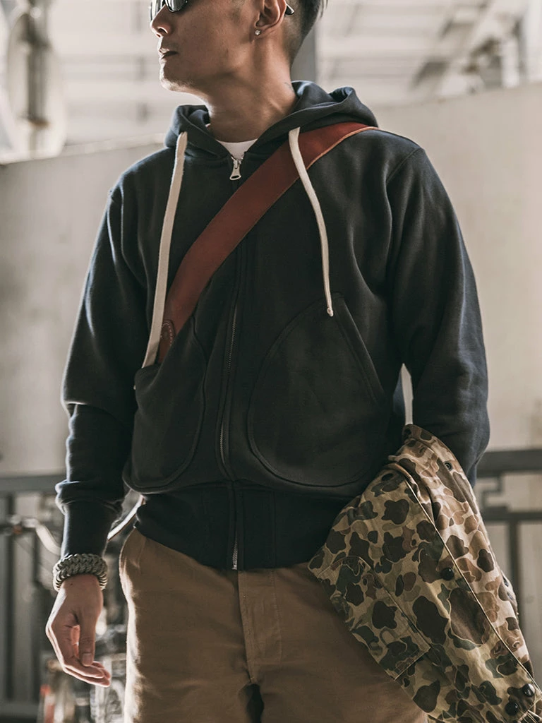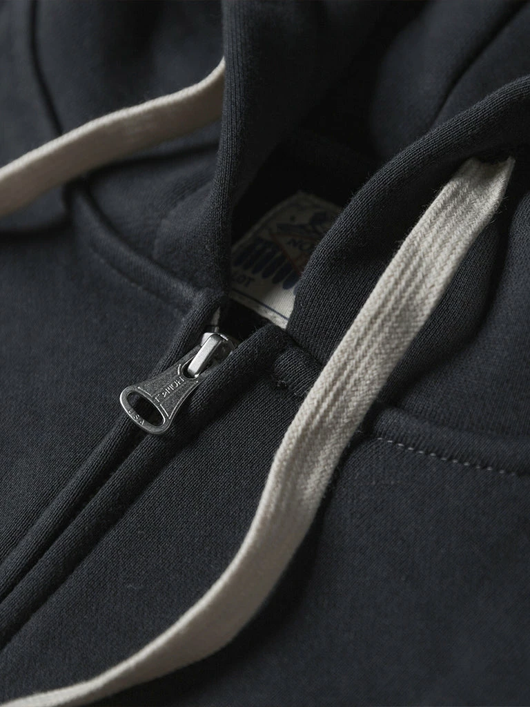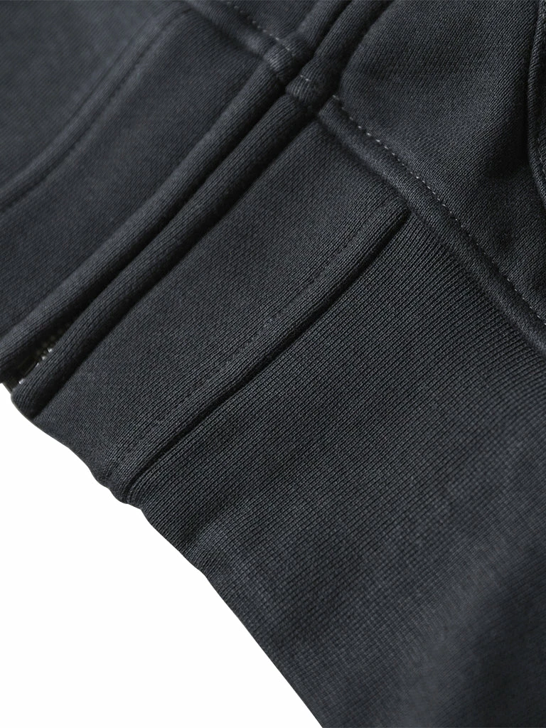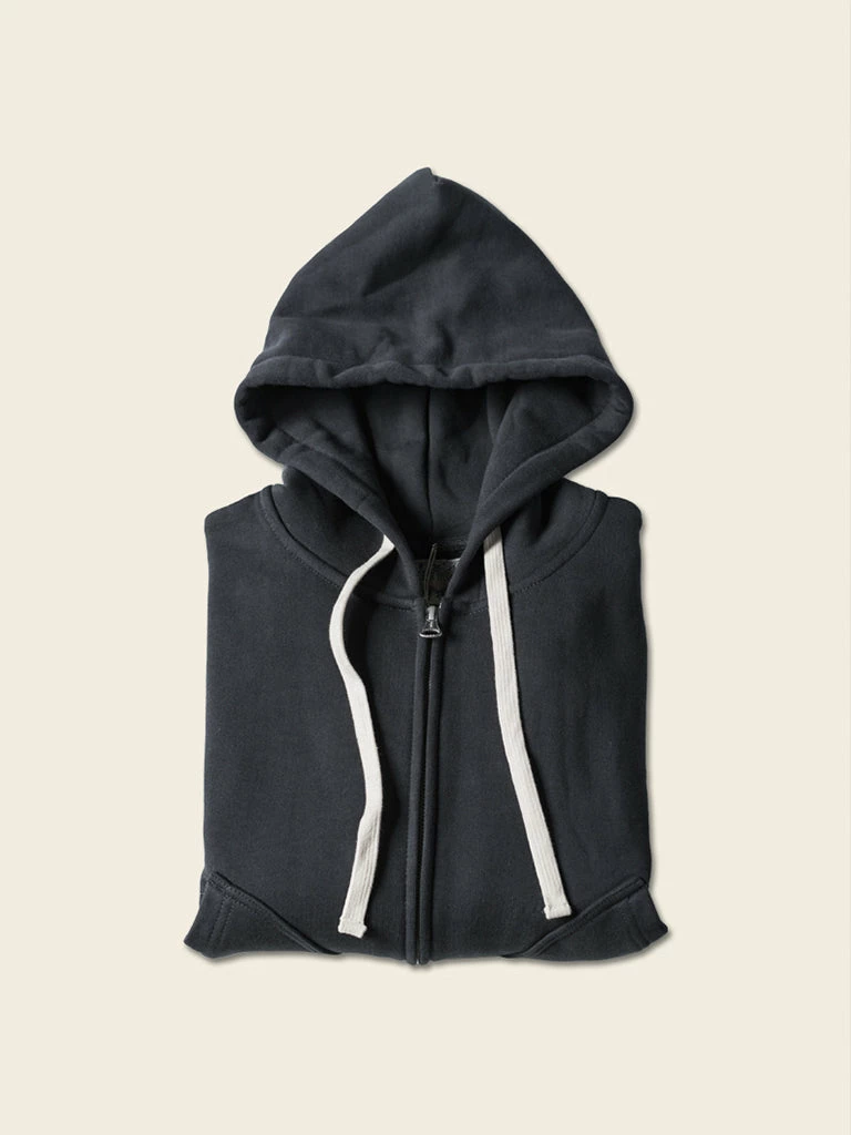 This zip-up hoodie is made of heavyweight 17.5 oz terry cloth, allowing the fabric to have a heavier and denser handle. It is soft, comfortable, and durable.