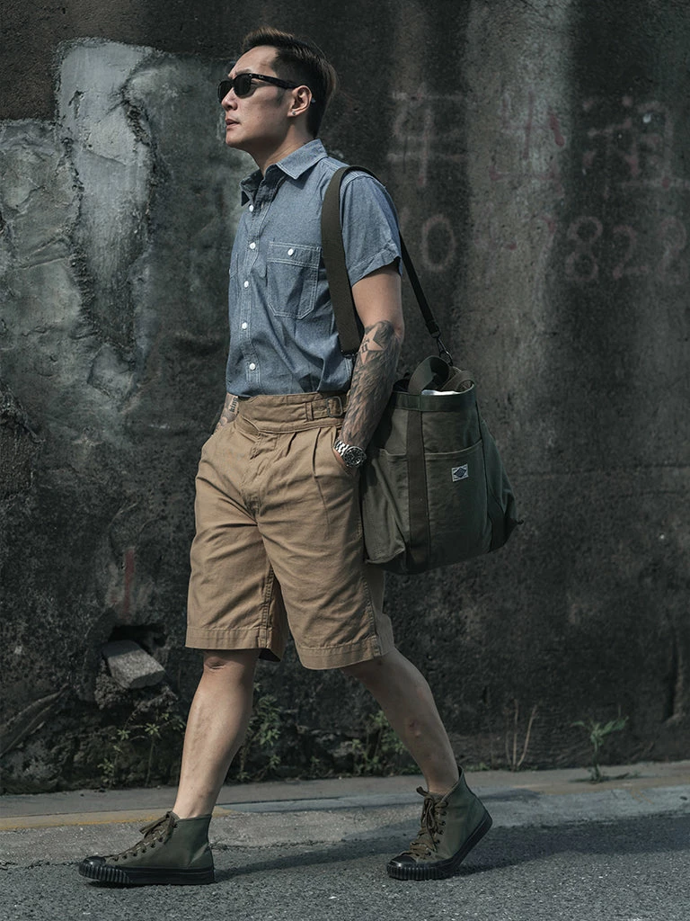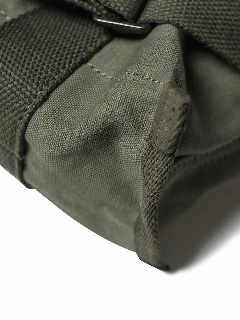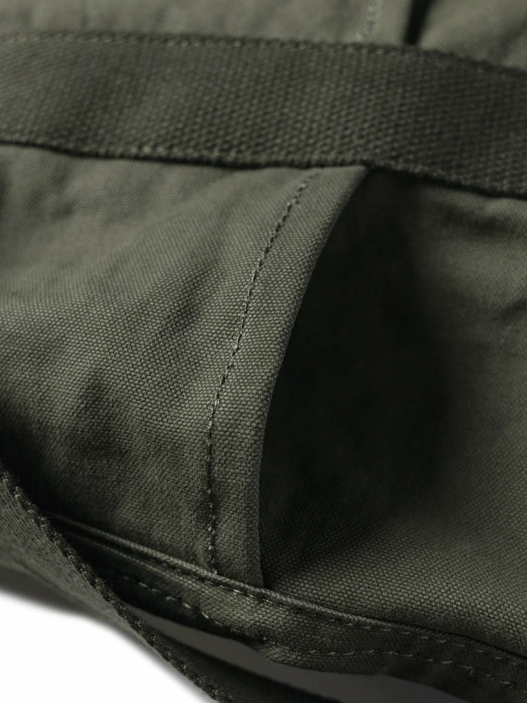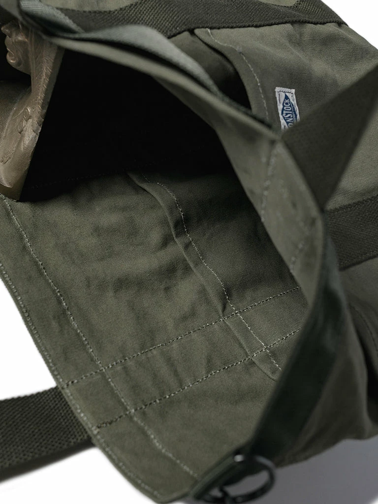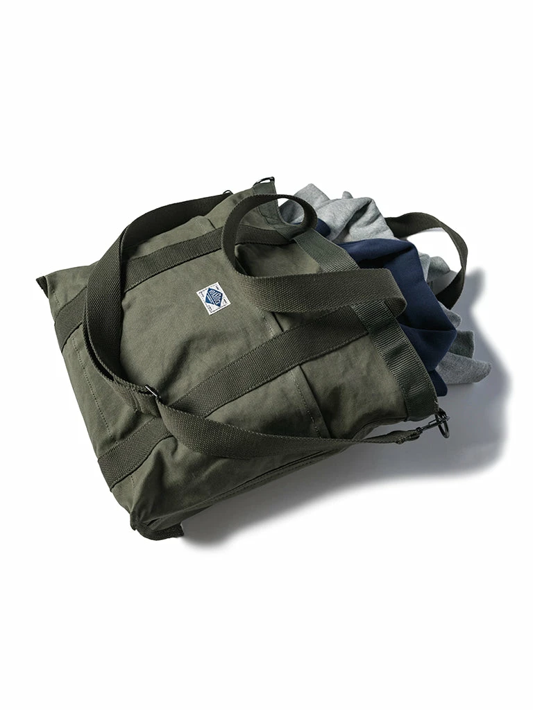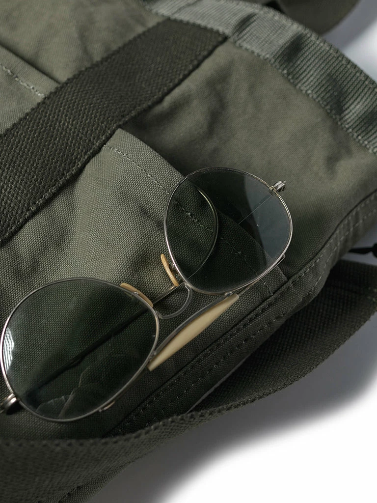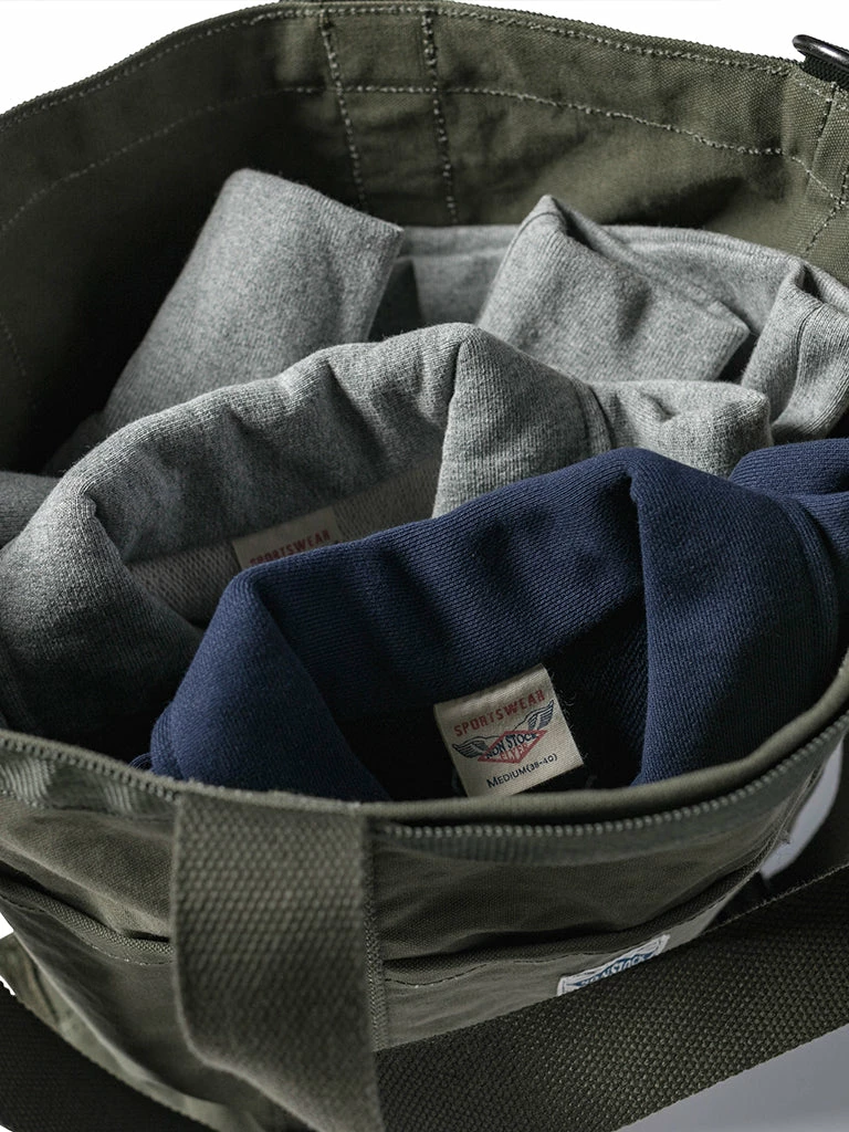 Based on the US Air Force helmet bag, the tote bag is made of heavyweight canvas, which is stiffer and more durable than nylon.