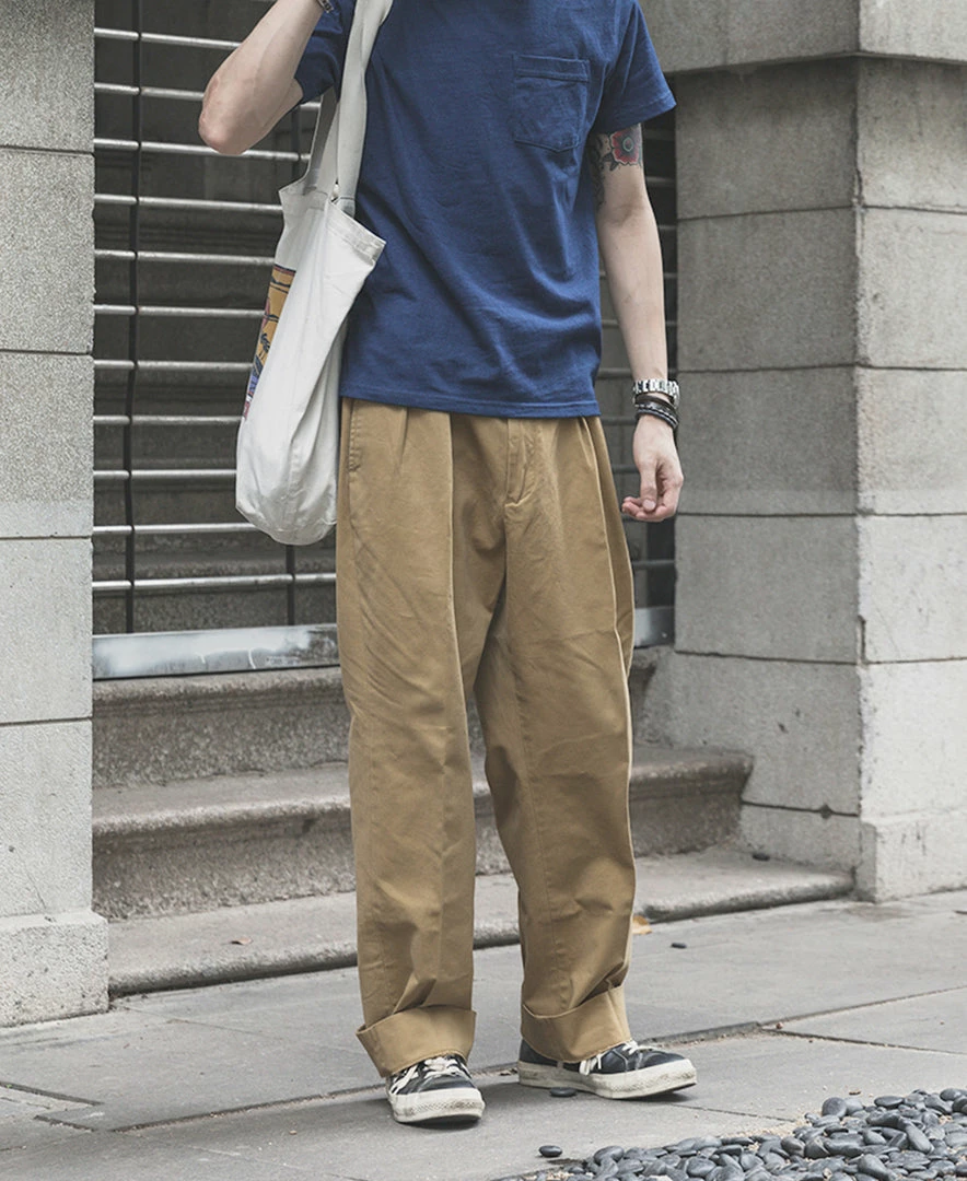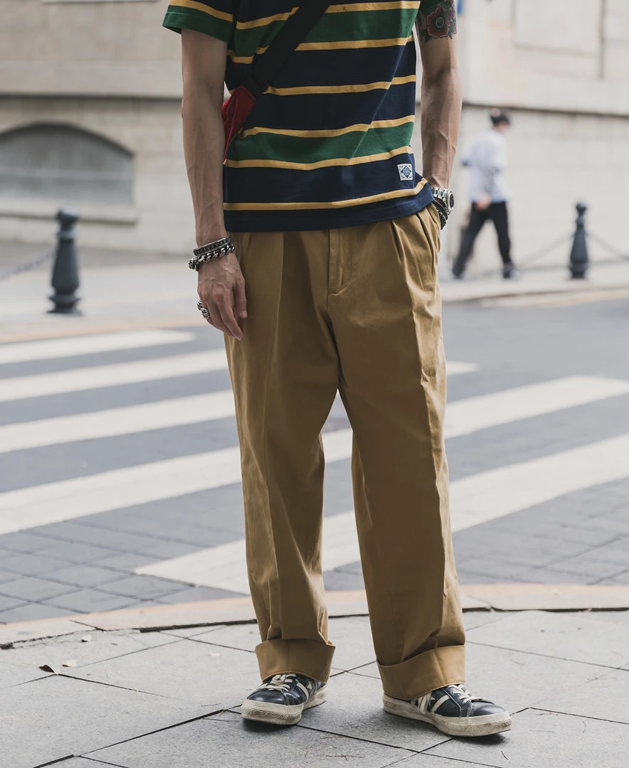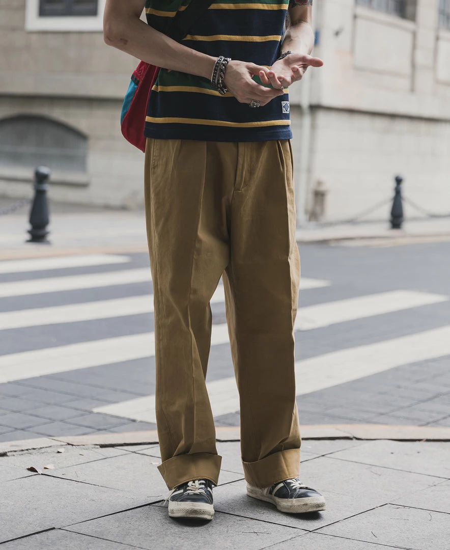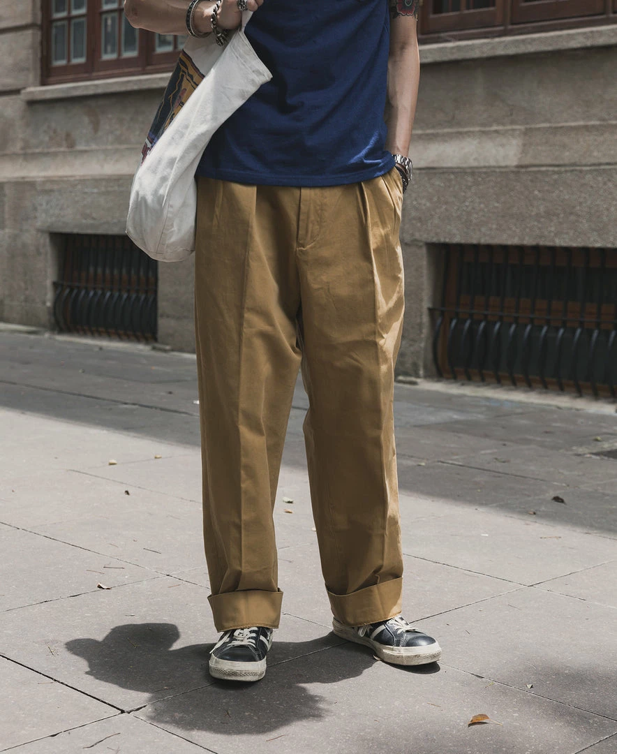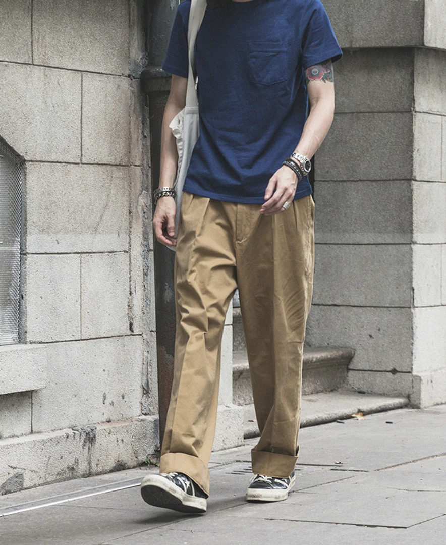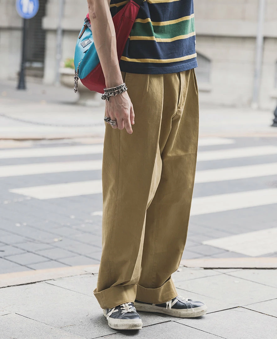 The trousers are made in the style of suit trousers, making them comfortable and decent to wear. The inner waist is hemmed, and the trouser leg has a 5 cm wide hem.