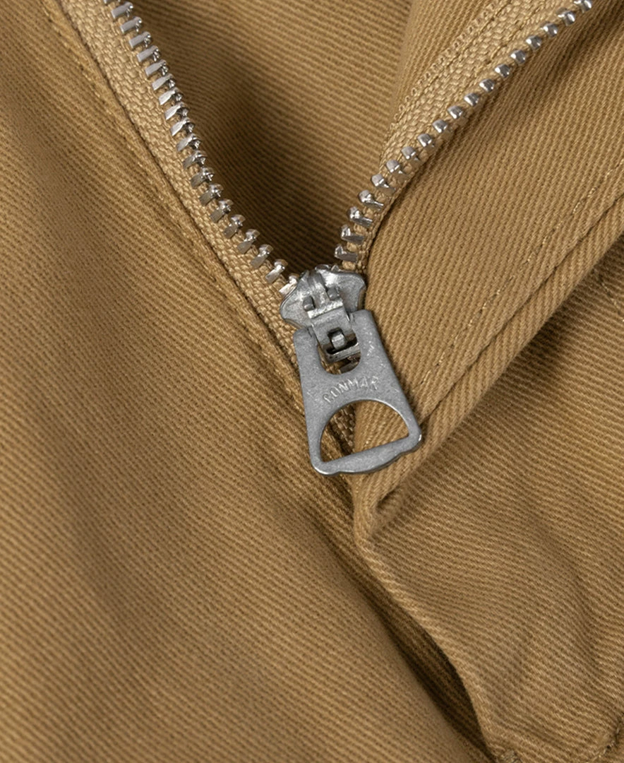 - 10.5 oz carbon brushed khaki, 100% cotton