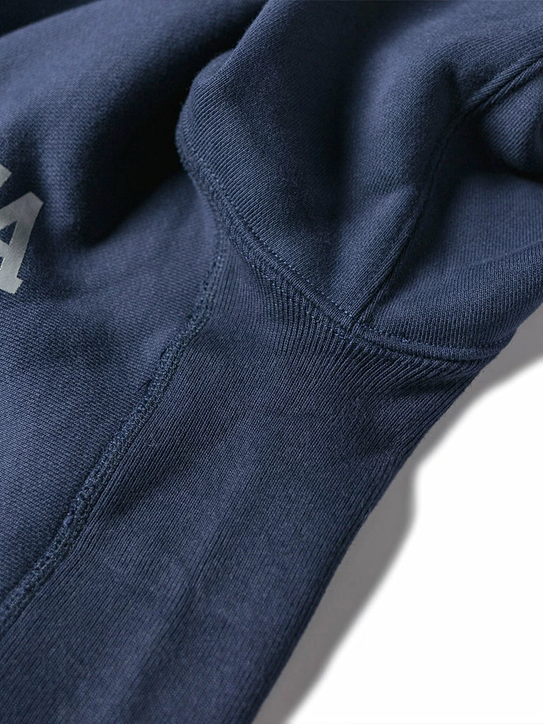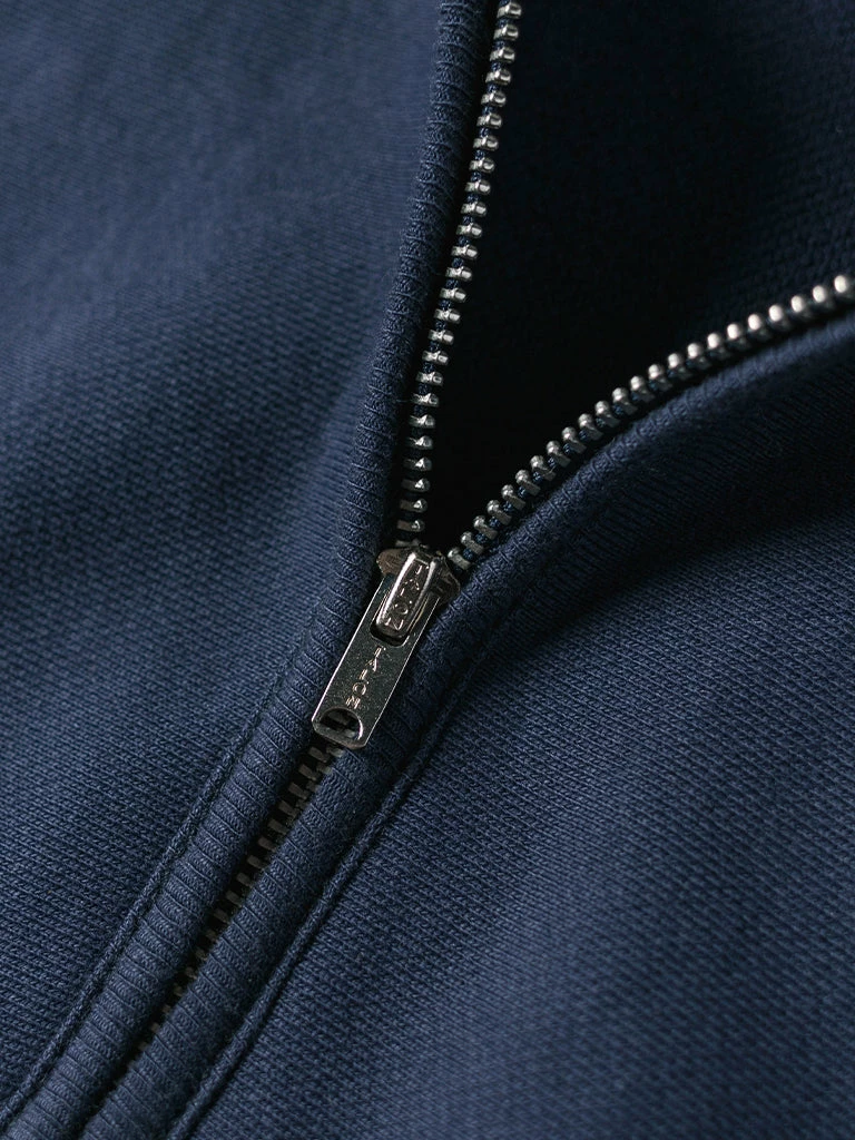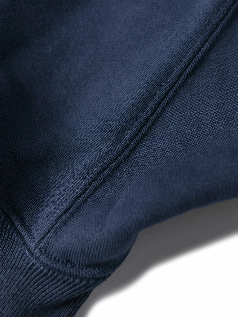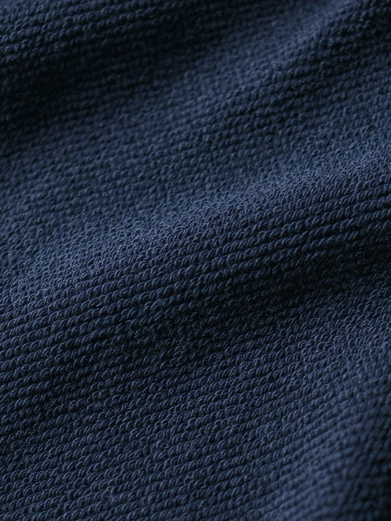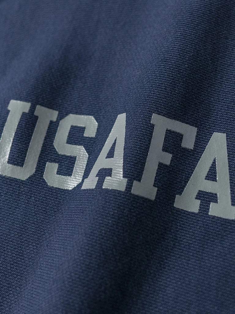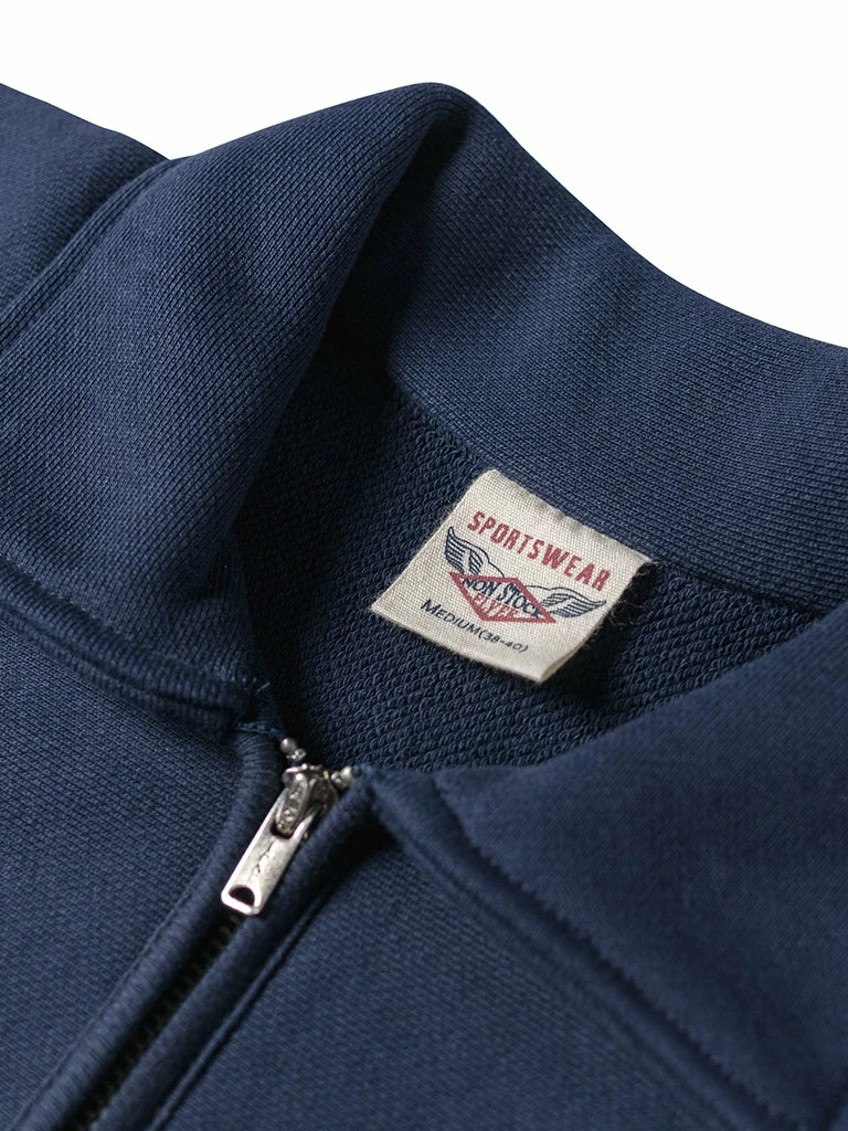 Based on the 1950s US AIR Force Academy training sweatshirt, it has a slightly looser sport cut, made of 17.63 oz of 100% cotton terry cloth with a half-zipper at the neck.