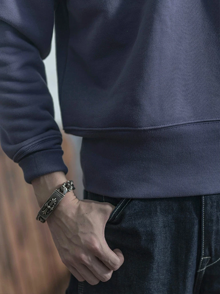This sweatshirt is made of blended fabric. This fabric is crisp than cotton fabric, heavyweight 20.5 oz, and has a solid hand feel. The warm touch and well-fitting cut create a secure wrap and mean you don’t have to wear much on it. A winter parka or heavy coat is enough for cold weather.