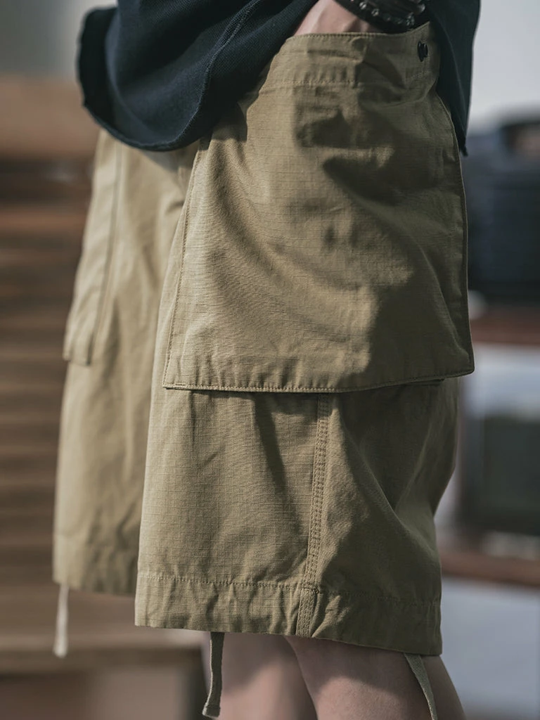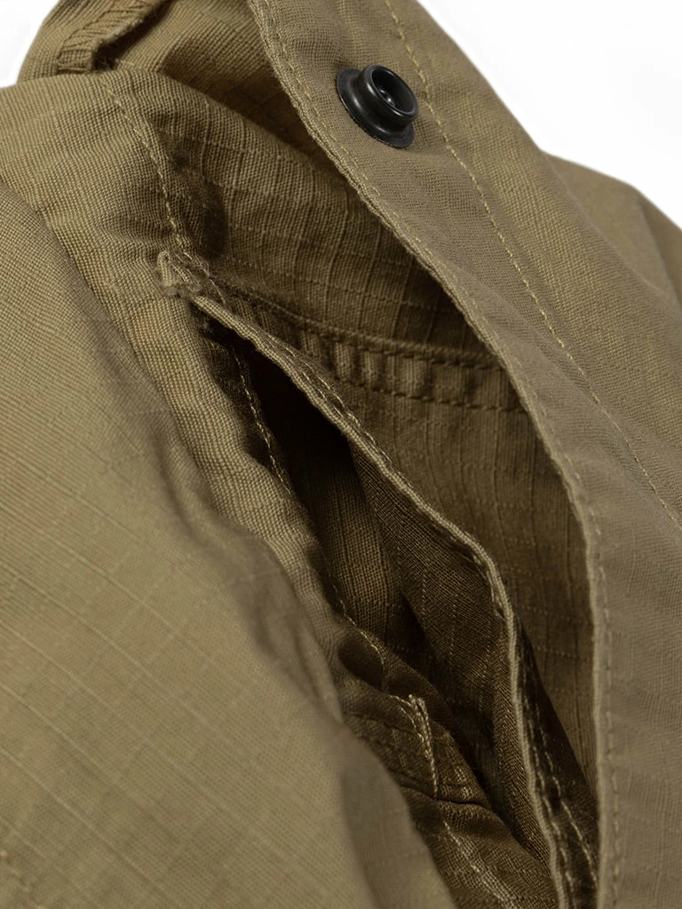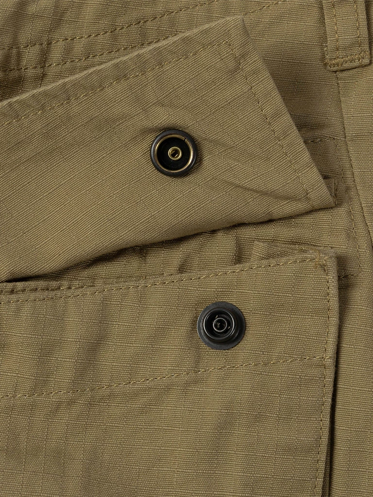 Inspired by the U.S. Army M42 Fatigue Trousers, cut from durable cotton ripstop. We have added new details, enlarged two side patch pockets, and Compartments are added to the pockets to facilitate sorting and storage. There are drawstrings at the waist and leg openings, which can be tightened if necessary. A circular arc patch was added to the hips for enhanced durability.