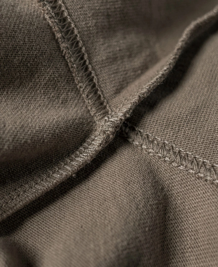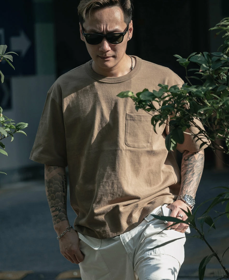 With a vintage-inspired loose fit, dropped shoulders, a U-shaped chest pocket and a split hem, this is the kind of T-shirt that’ll never go out of style. Made of roving cotton fabric, the fabric has a strong texture and a rough touch, just like blending flax into the fabric.