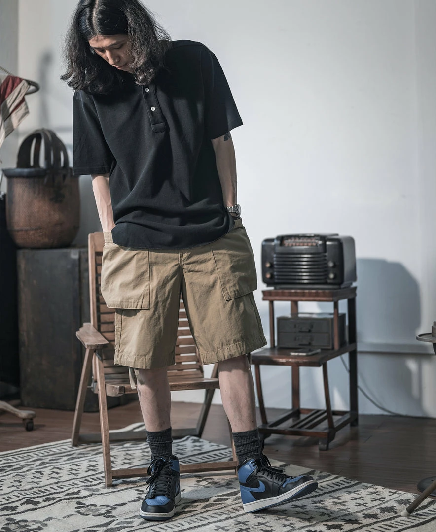 This T-Shirt is made of cotton pique, breathable and durable, with two white natural shell buttons fastening. Classic baseball shirt front placket, and dropped shoulders cut. Create casual style modeling easily.