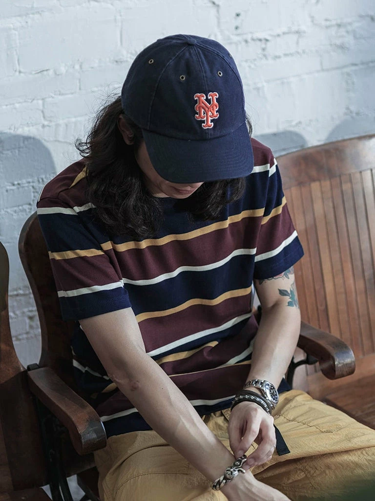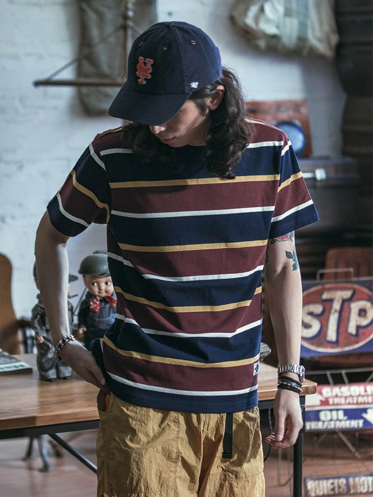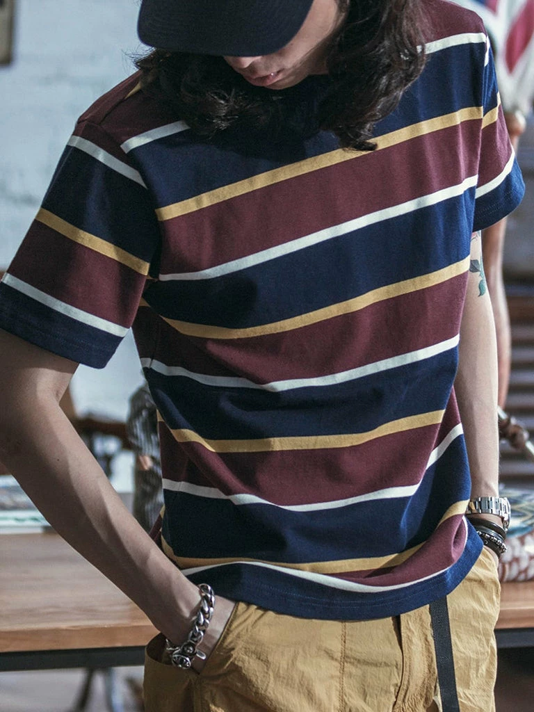 This is an IVY style stripe T-Shirt, made of 9.8 oz cotton, and uses the classic IVY style color scheme, the fabric texture is good, soft and comfortable.