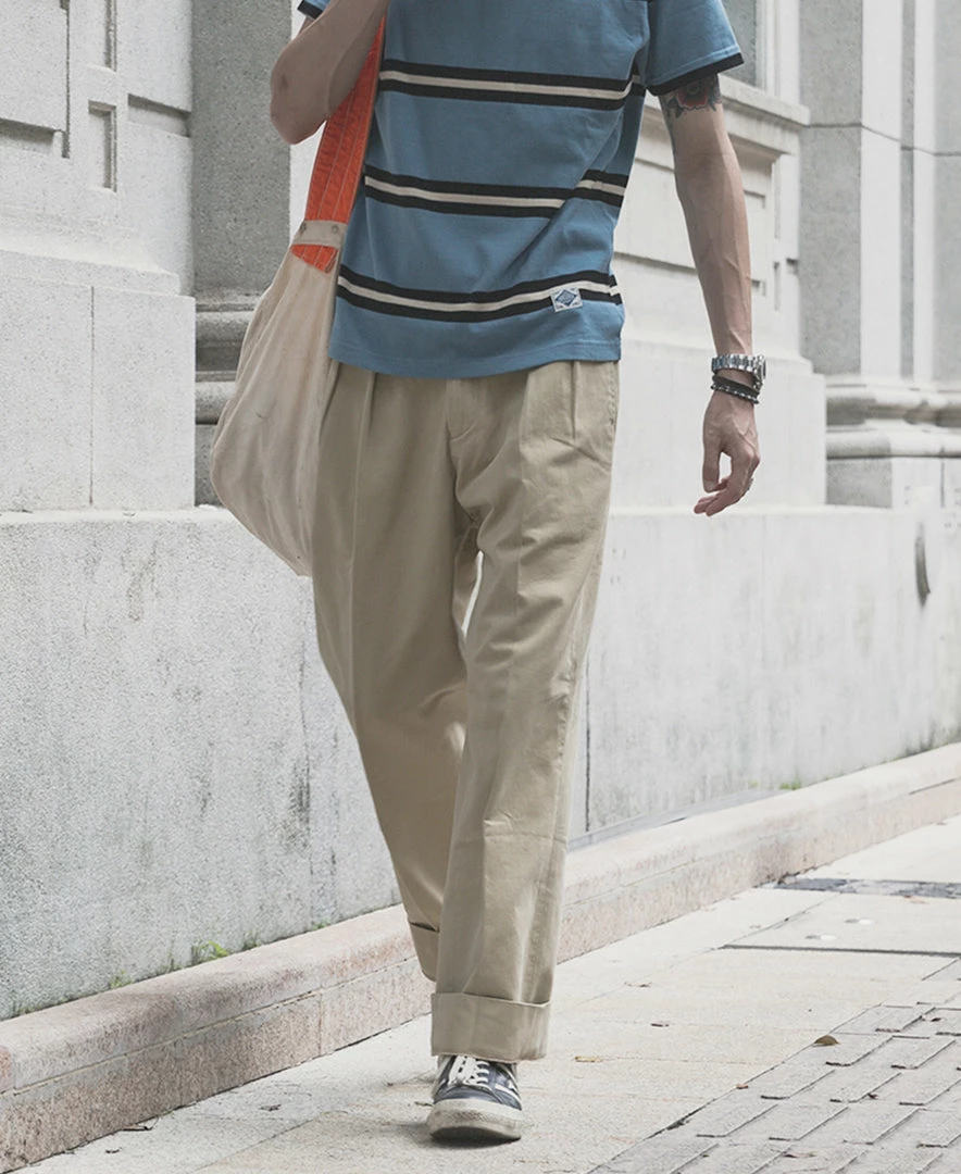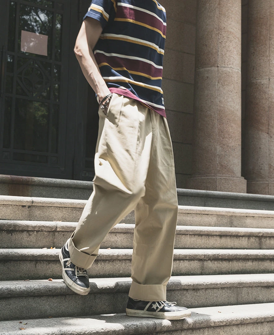 The trousers are made in the style of suit trousers, making them comfortable and decent to wear. The inner waist is hemmed, and the trouser leg has a 5 cm wide hem.