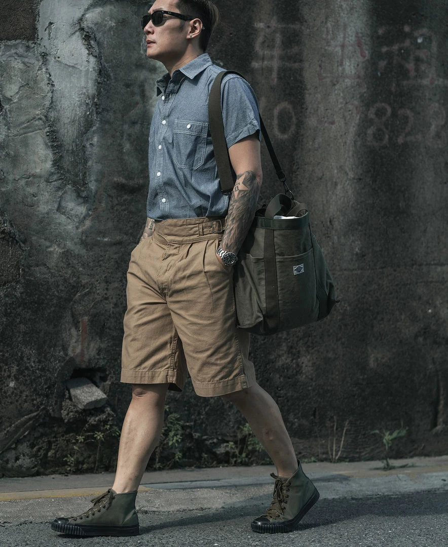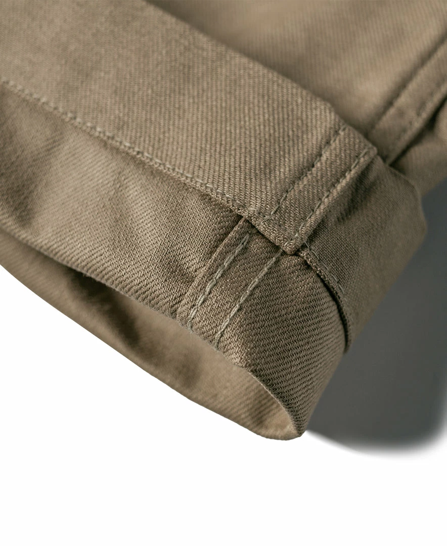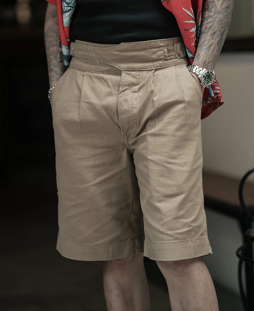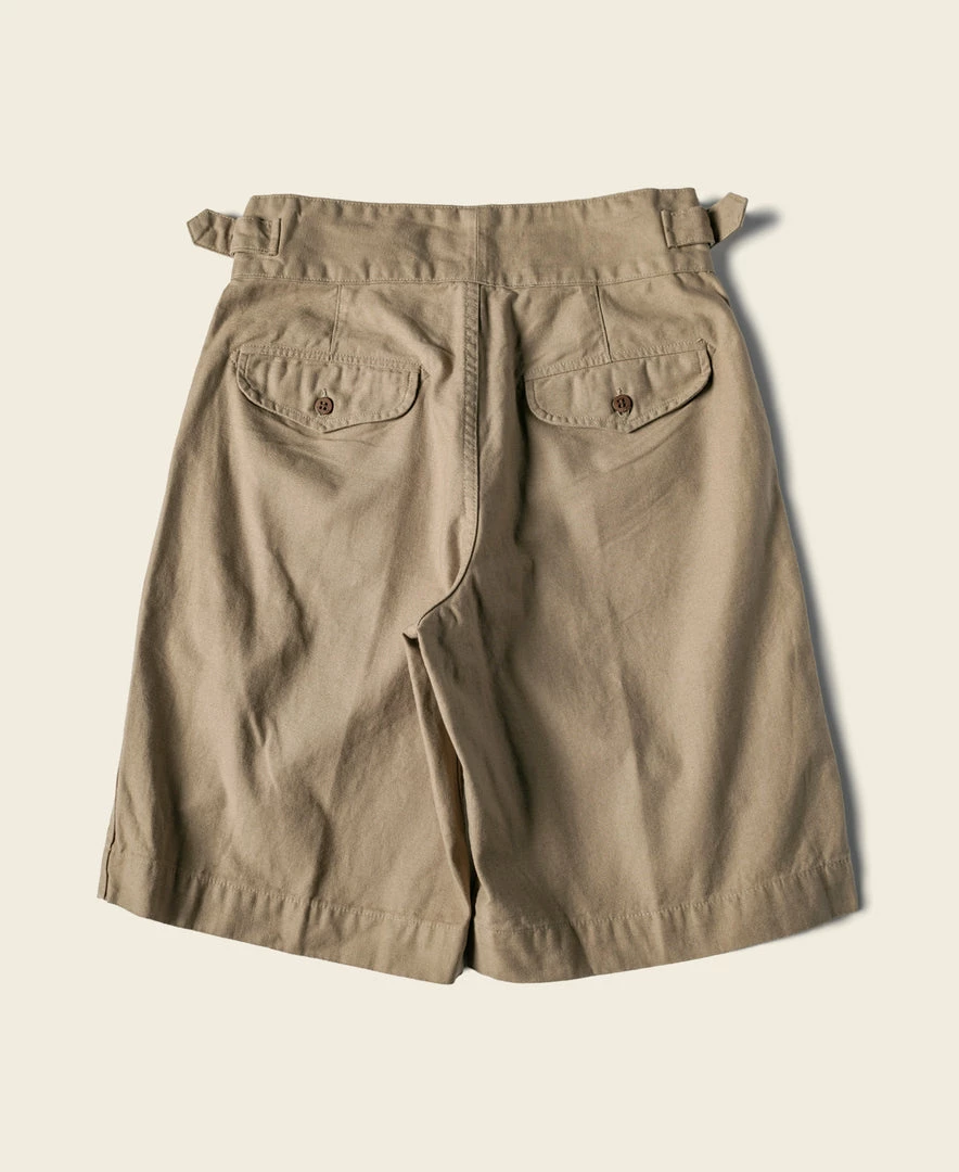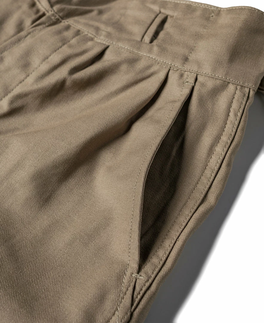 The Gurkha trouser was borne out of this alliance as well – rooted in British military tradition but explicitly modified for use by the Nepalese. The pant is defined by its double-pleated front and high, cummerbund-style waistband with buckle fastenings.