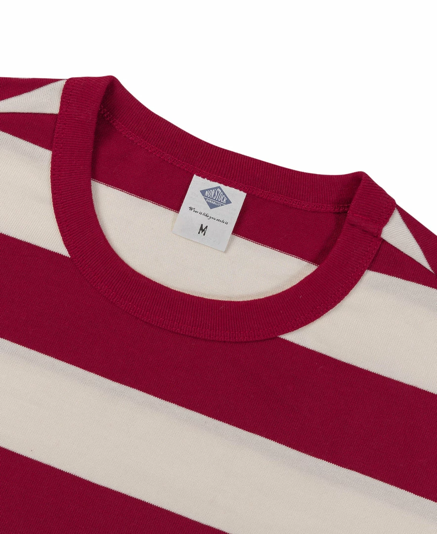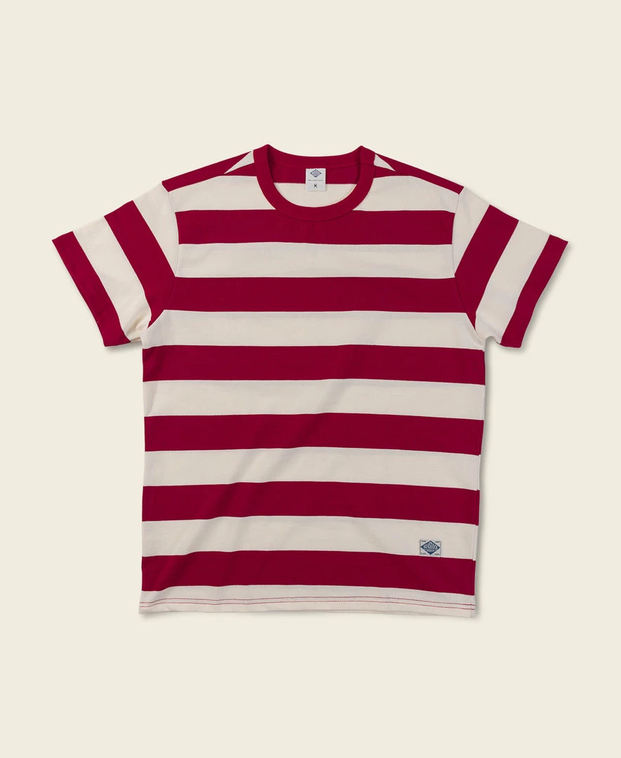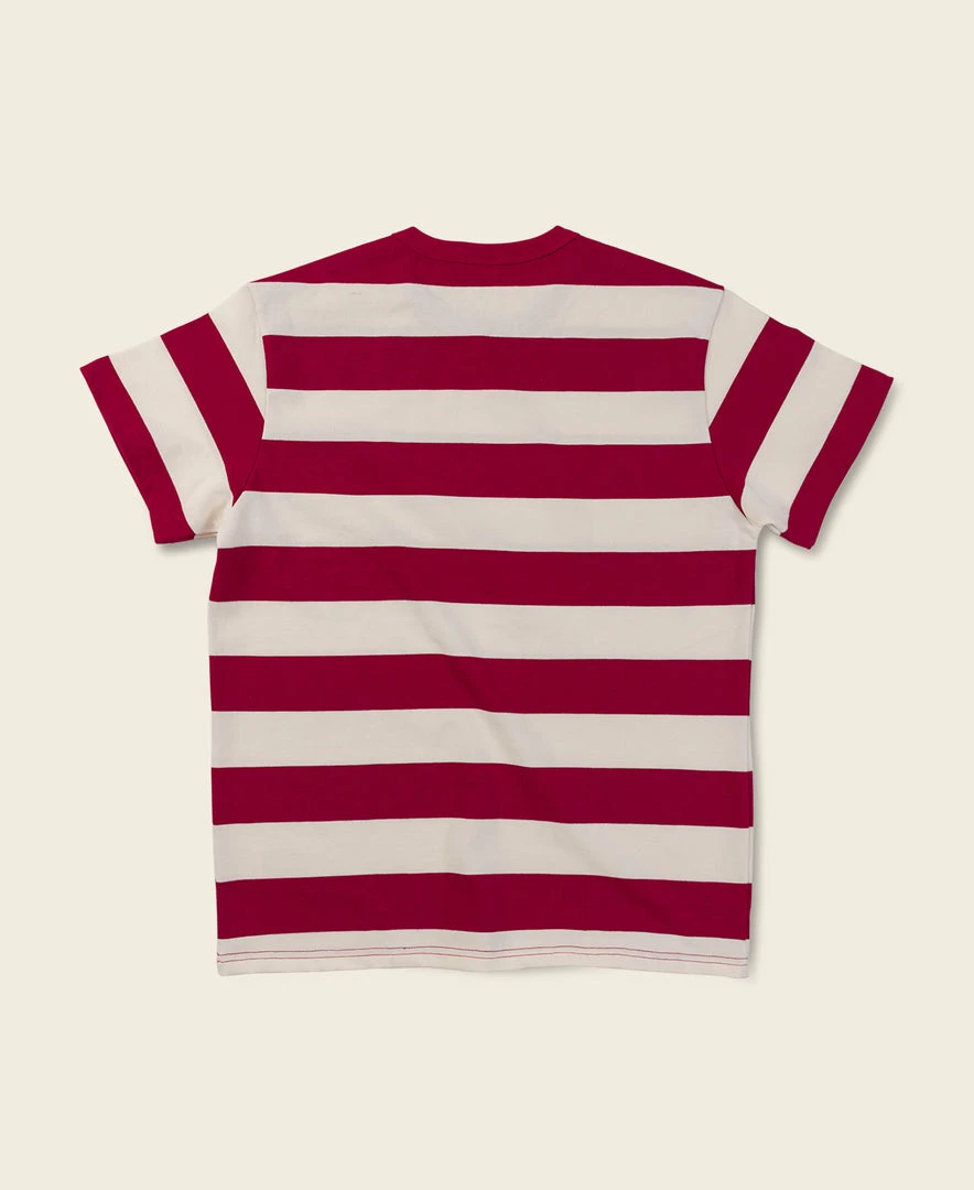 Non Stock Heavyweight Cotton Wide Striped T-Shirt – Red/Apricot TOPS