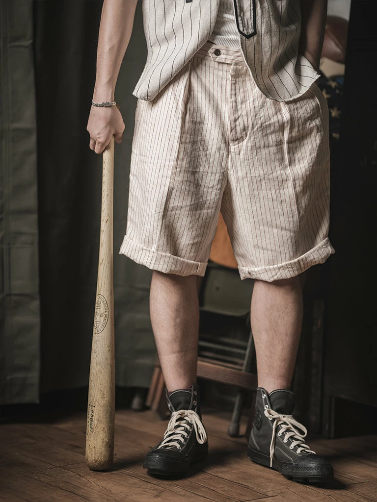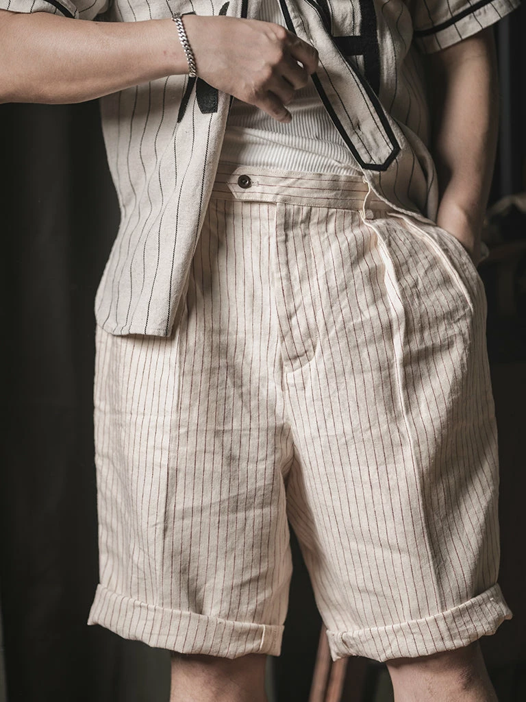 The shorts are made from thicker linen fabric. The linen fabric is custom made for good draping which makes it ideal for the summer. Breathability is very good and feels soft to the touch from the minute you put it on. The shorts are in a straight style which is very loose. The shorts are slightly longer than the knees, if necessary, rolling up the leg pants is also a good idea. Easy to pair with your favorite shirt.