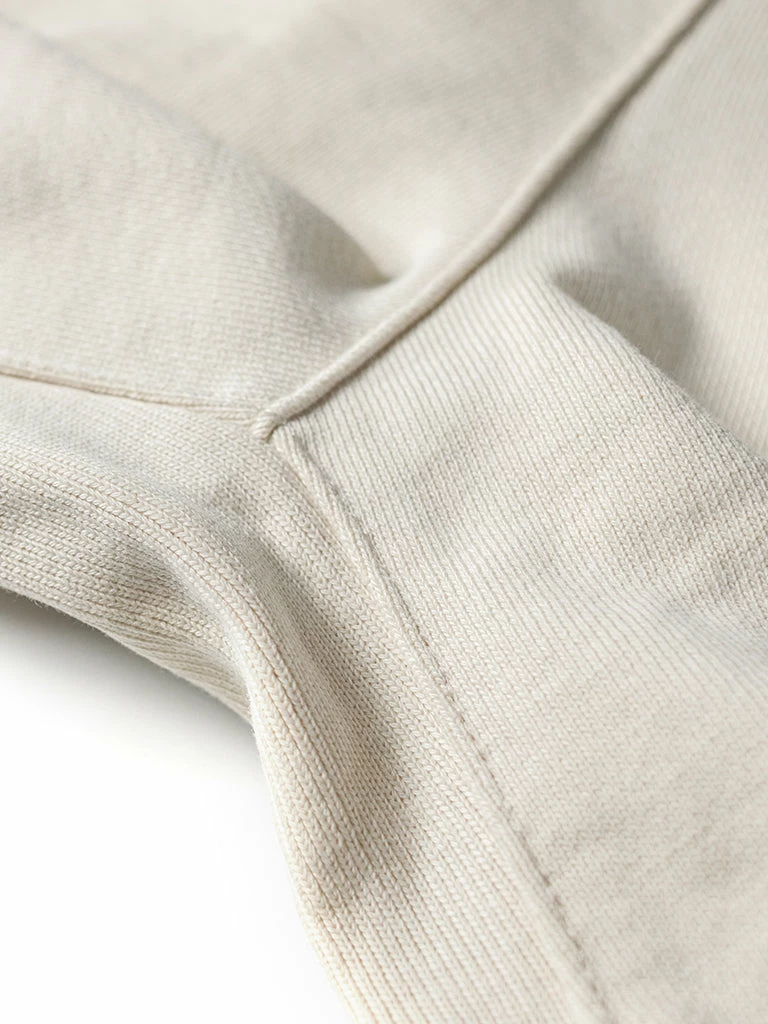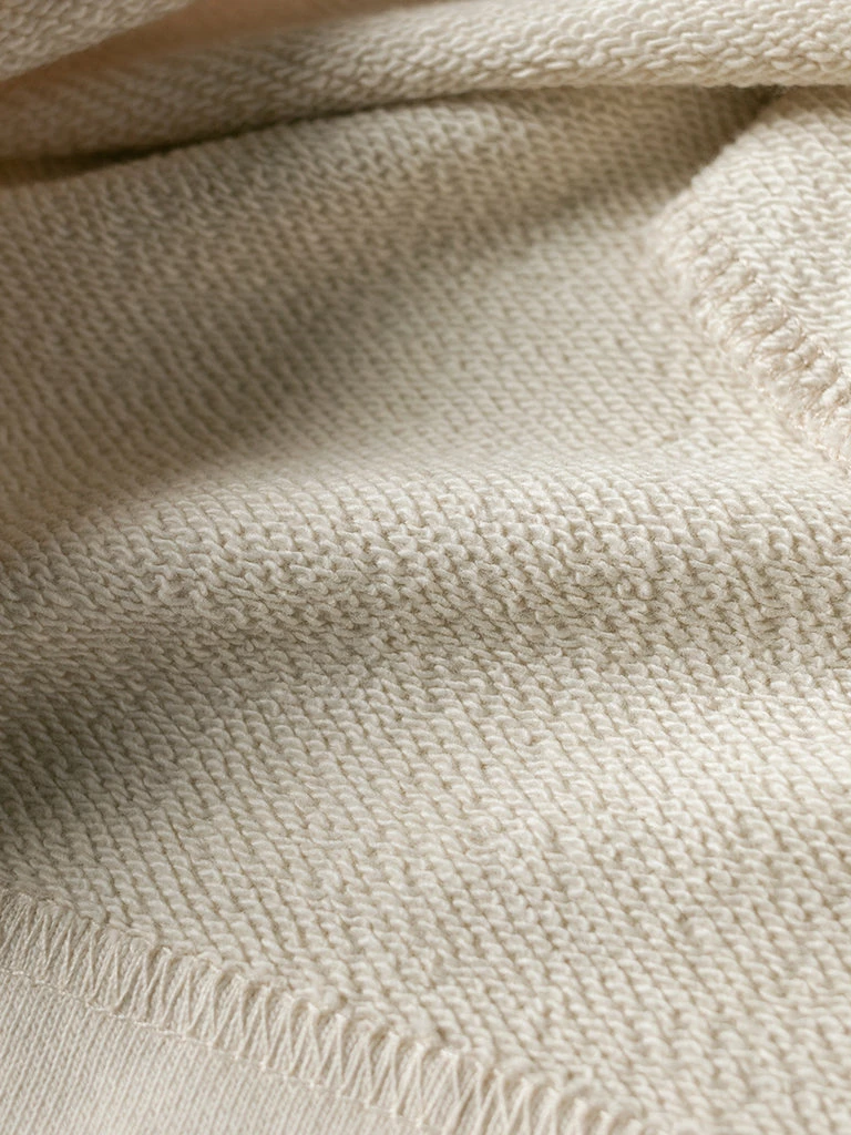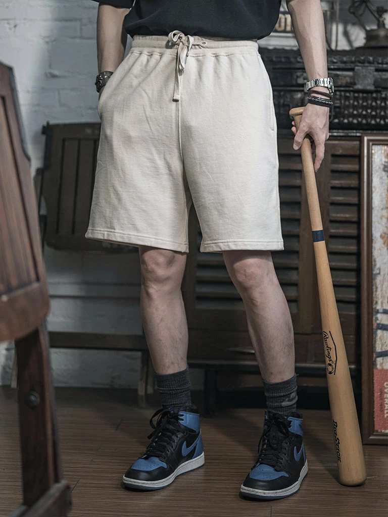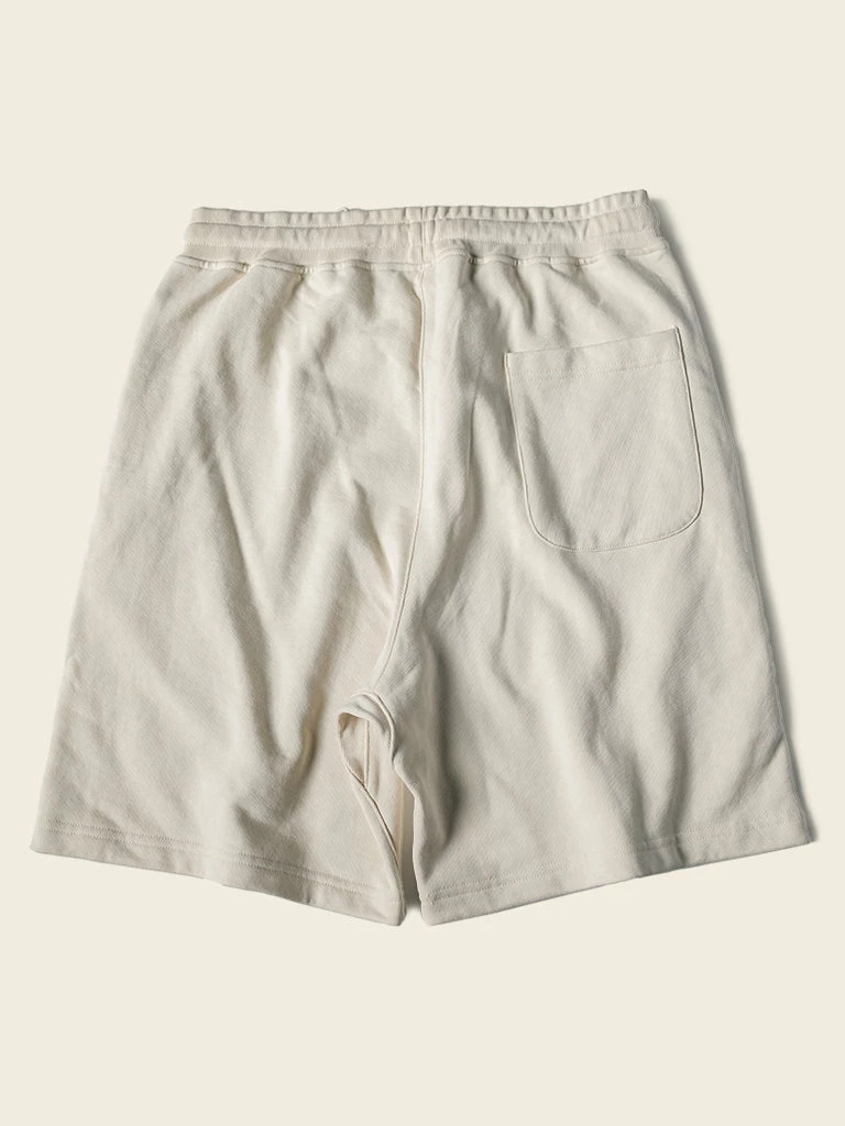 A pair of sweat shorts for spring and summer. The shorts are made from soft french terry fabric, super comfortable, and feature an elasticated drawstring waistband with an adjustable cotton drawstring to ensure you find the perfect fit, a ripstop triangular ribbed patch at the bottom of the shorts for extra durability, and two side pockets at the waist for safely storing items.