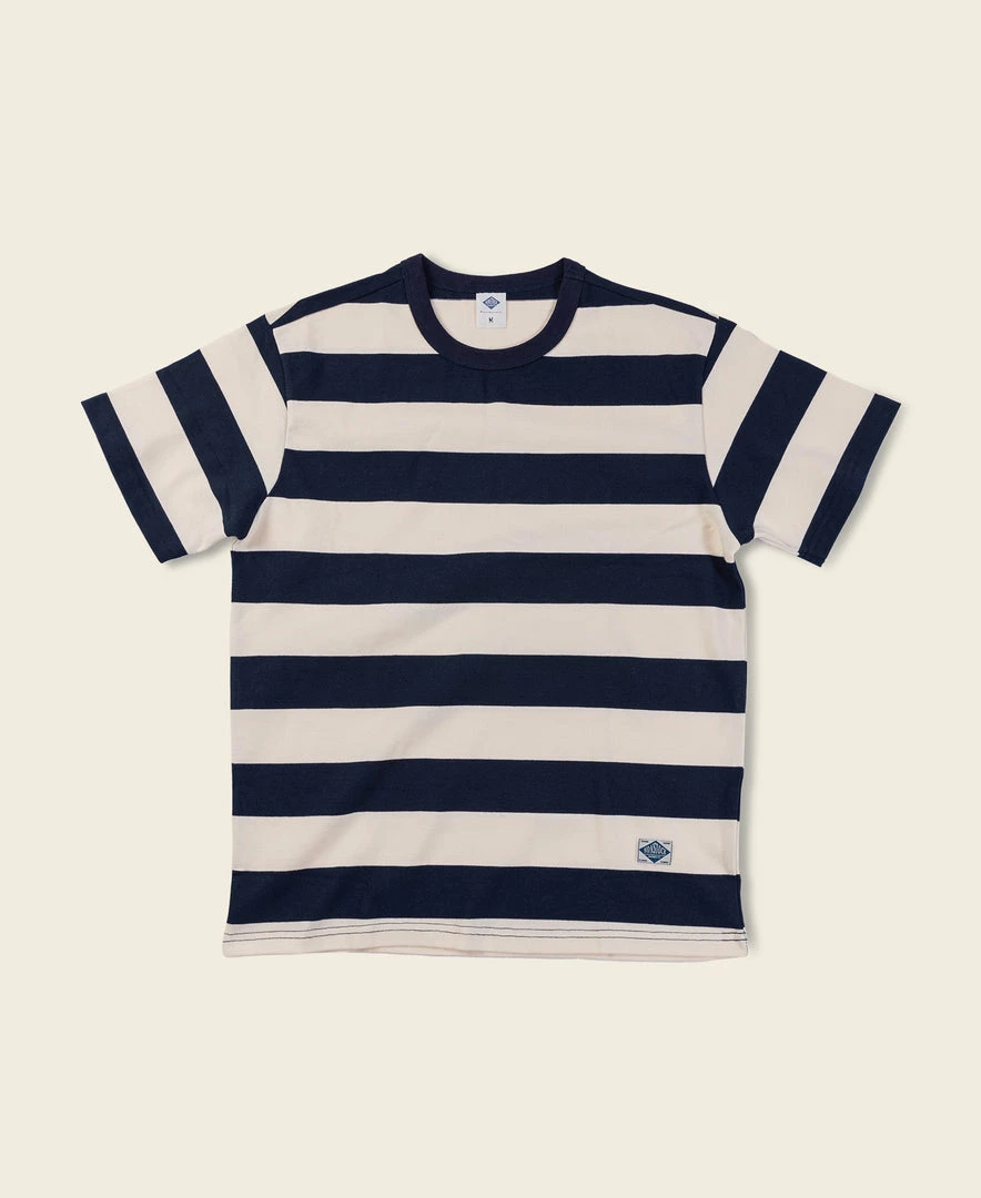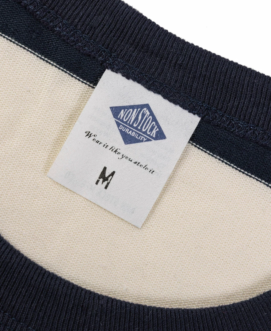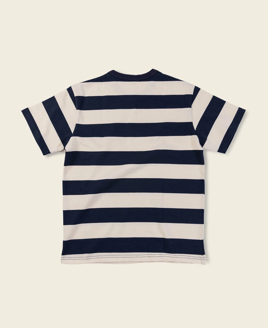 A 1950s inspired stripe tee made popular by motorcyclists in mid-century America. This Stripe Tee is made of heavyweight 9 oz cotton fabric.