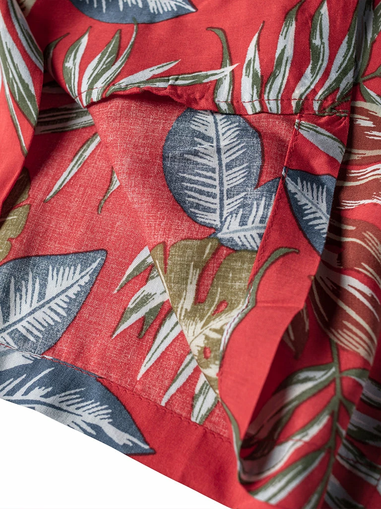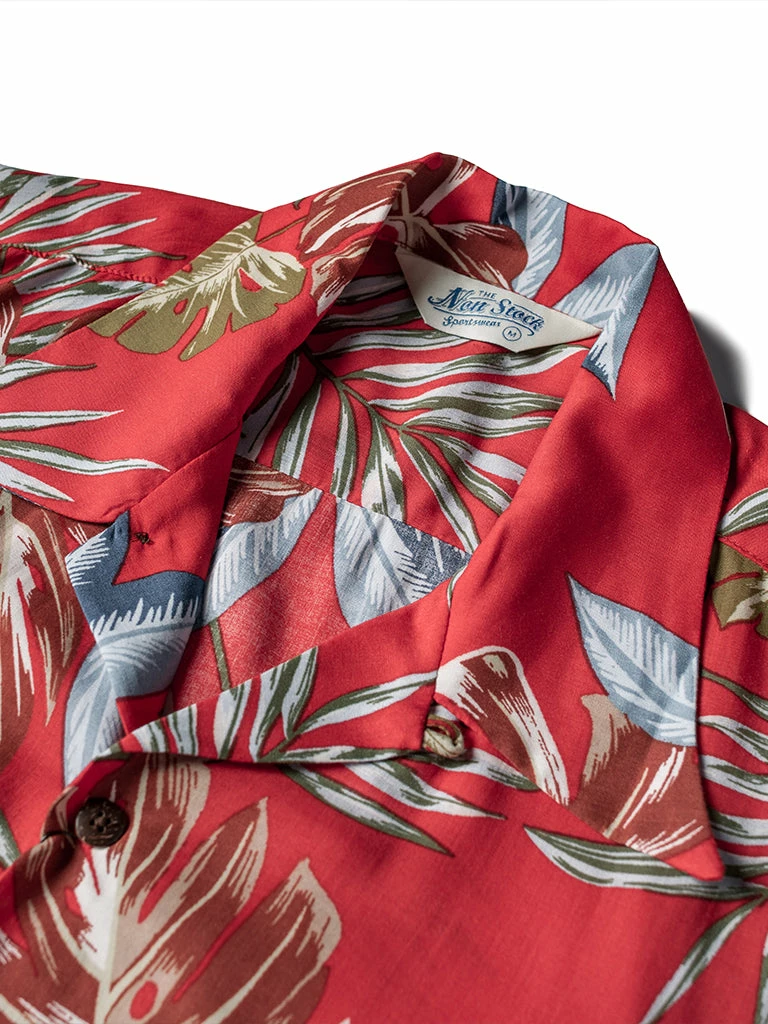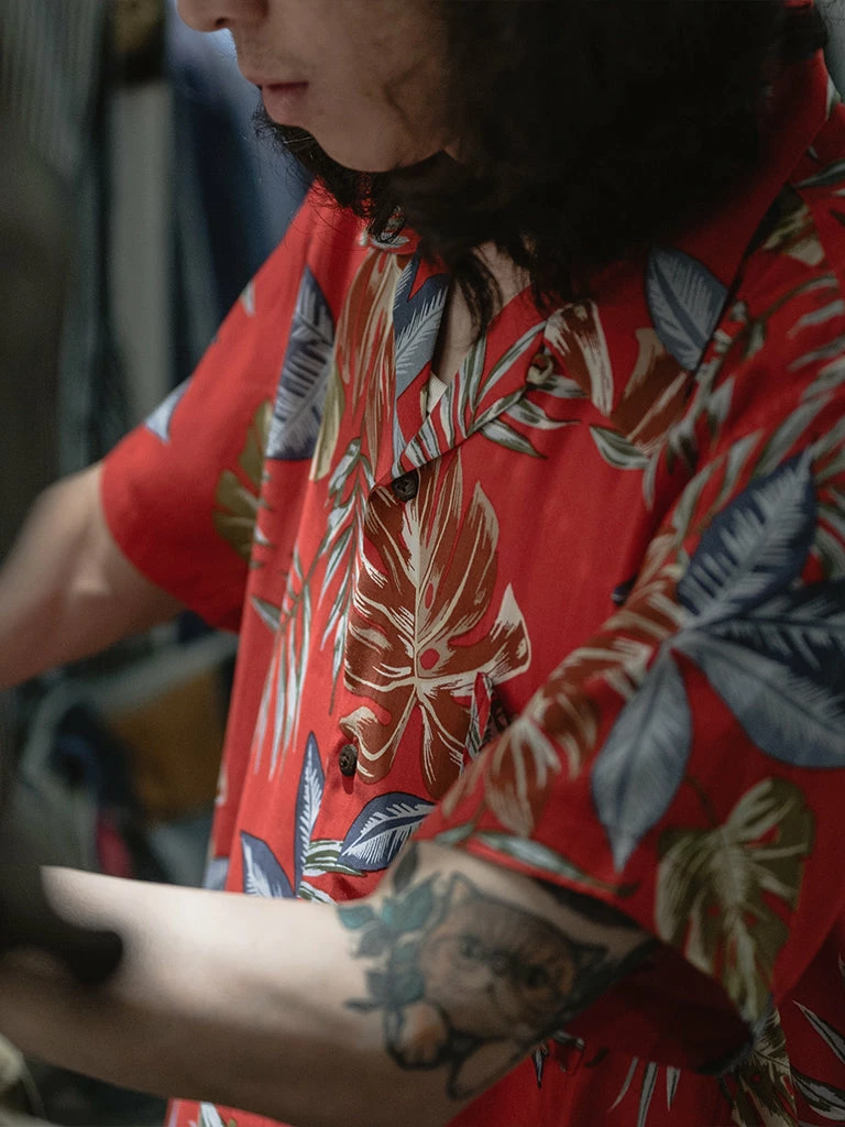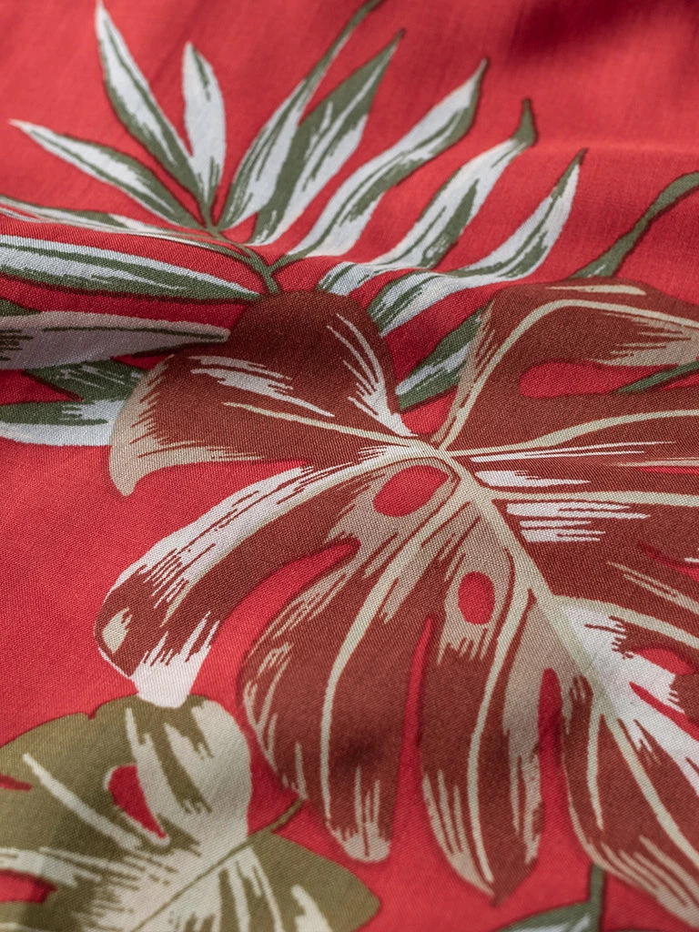 The shirt’s design retains the authenticity and quality of Hawaiian shirts from the golden era of the style. It is made from rayon which has a tactile quality and liveliness to it like no other fabric, and with plants and flowers pattern. There’s a single chest pocket, a great place to put sunglasses or a similarly sized object. It can be worn alone or open over a tee.