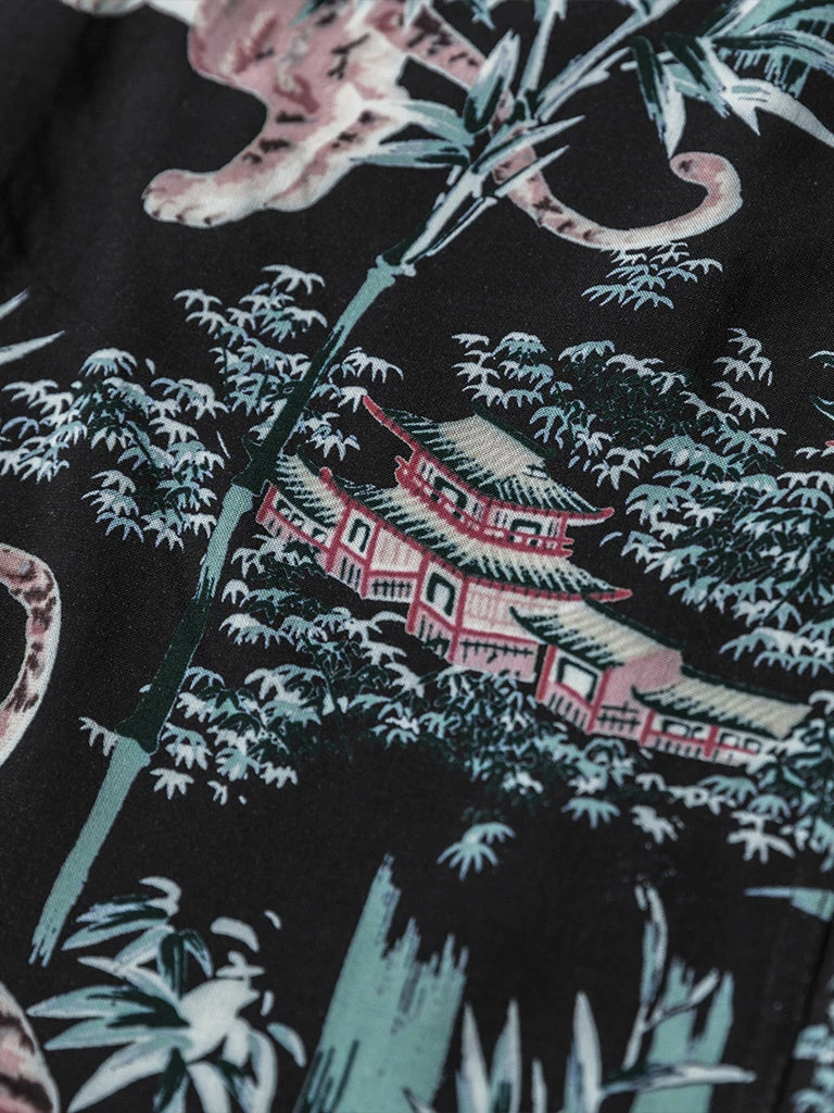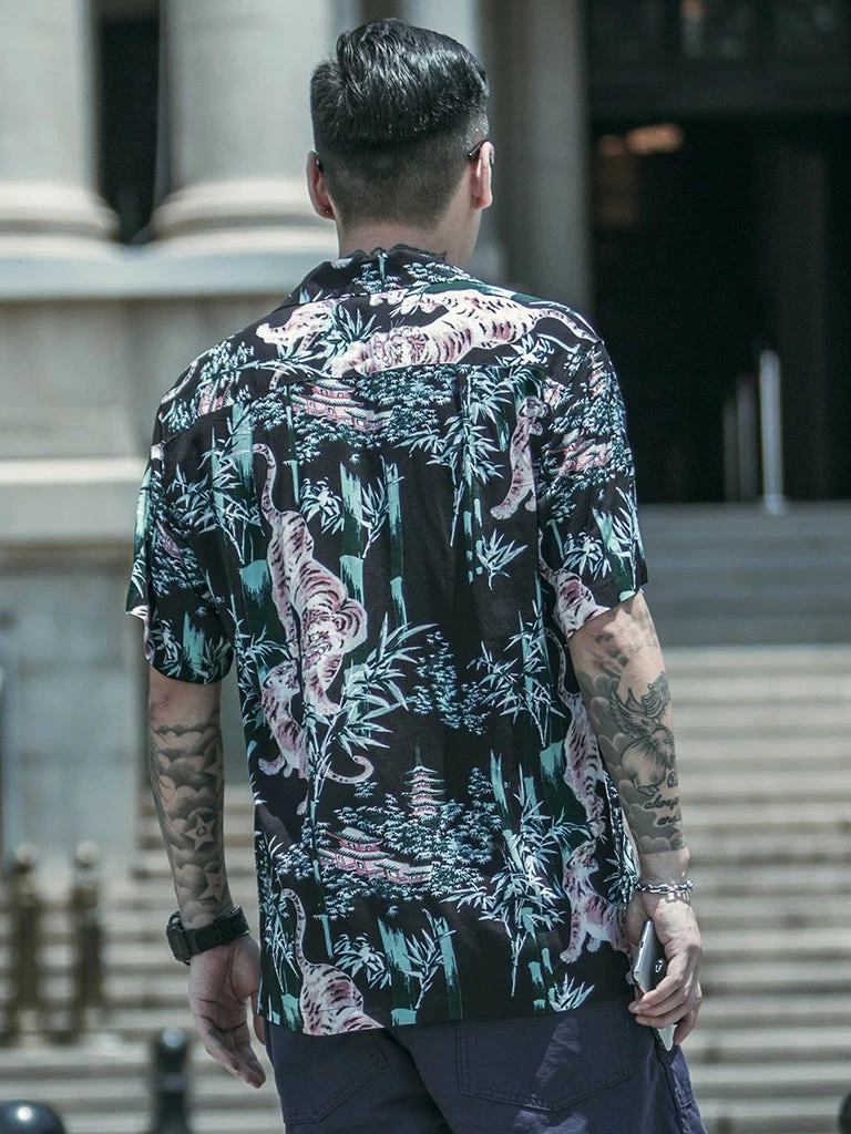This Hawaiian shirt features Japanese Ukiyo-e Tiger & Bamboo pattern prints.