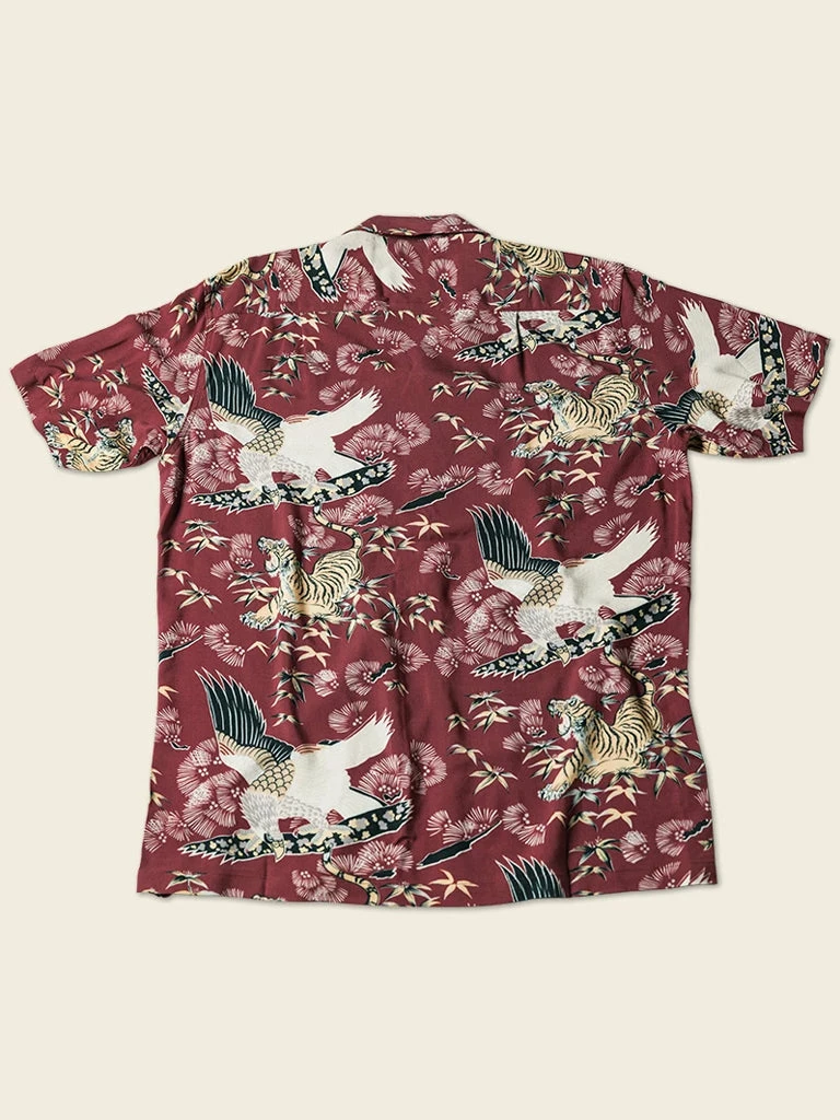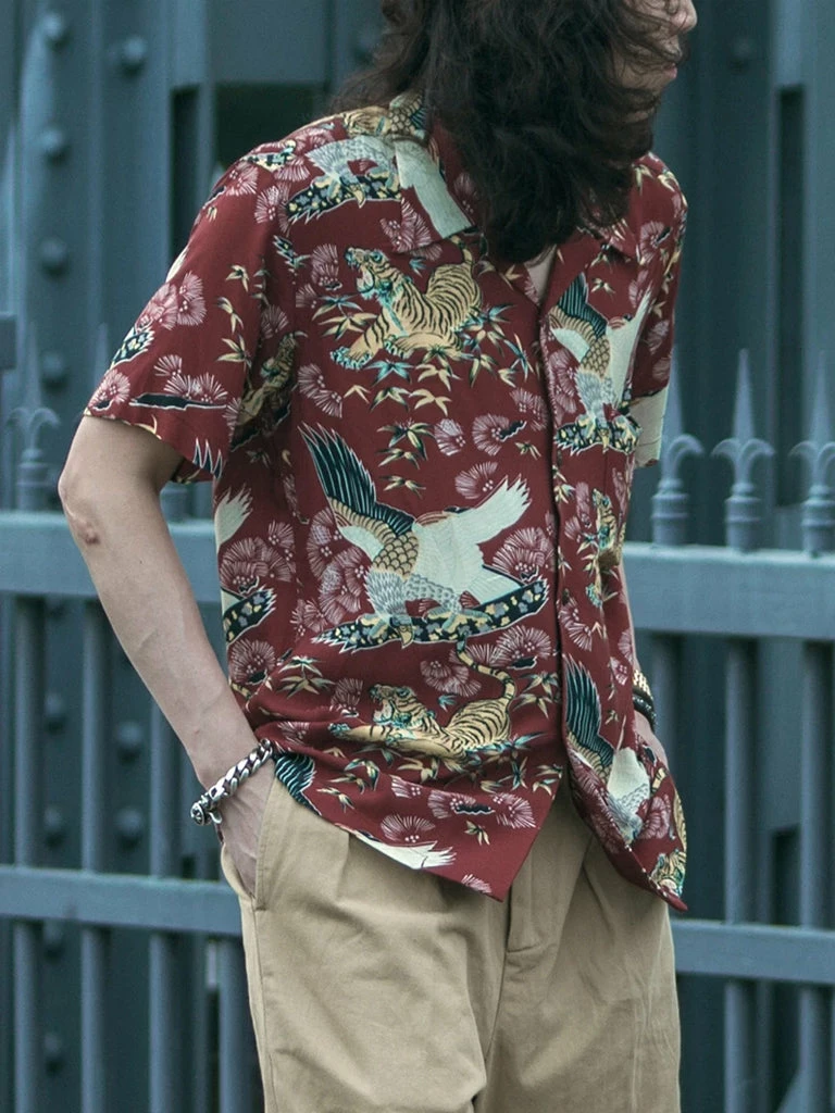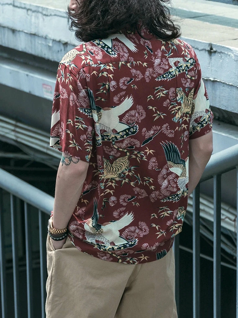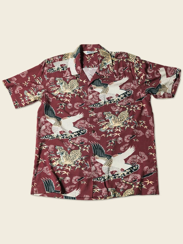 This Hawaiian shirt features Japanese ukiyo-e tiger & crane pattern prints.