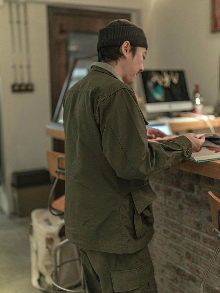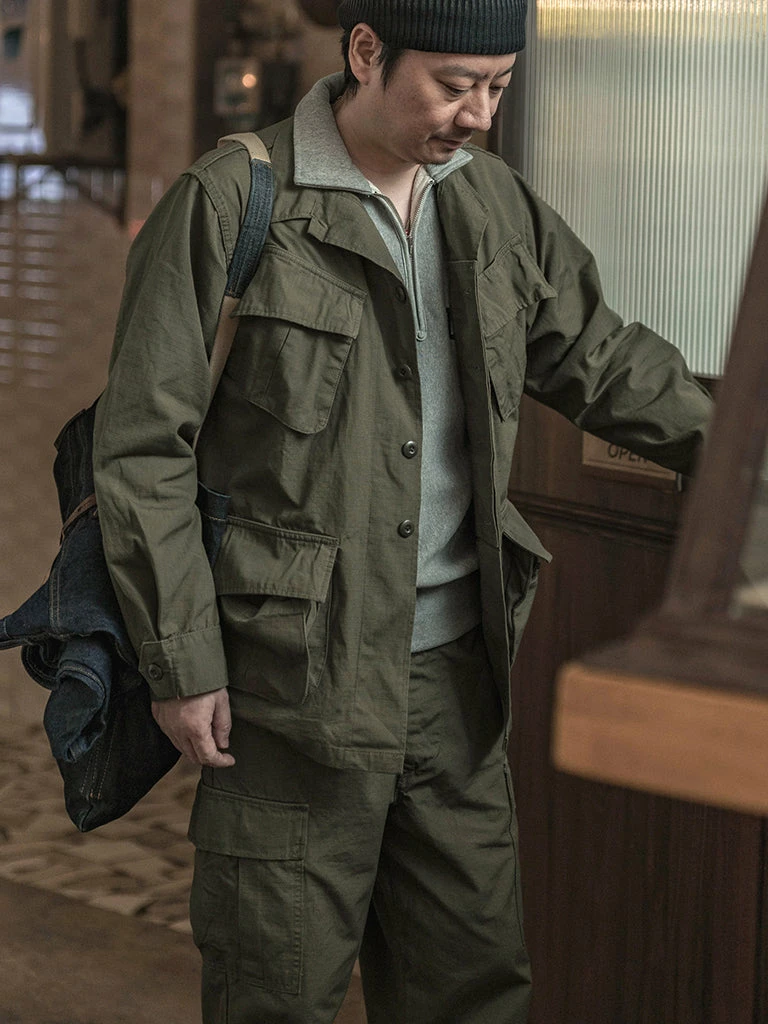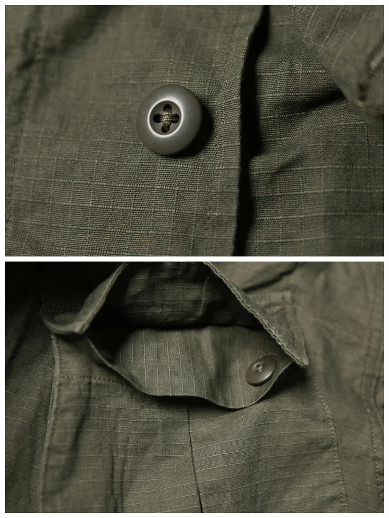 Based on the 1969 5th Tropical Combat Jacket, the epaulet and adjustable waistband were removed, the ripstop fabric introduced in 1968 was used, and the cuffs were adjustable cuffs simplified in the 1969 version. The jacket is very close to the original in both color and texture.