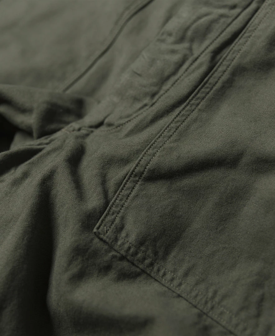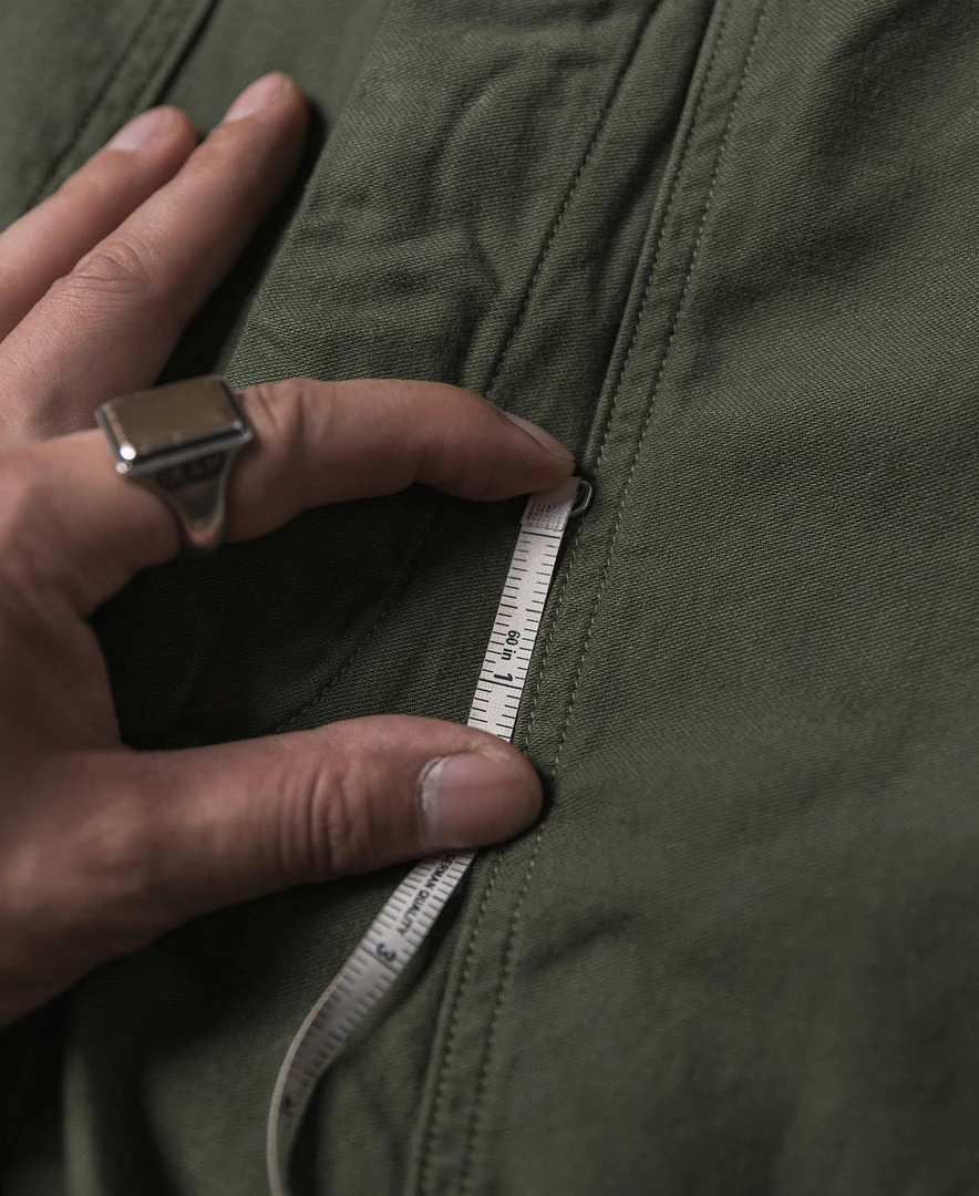 These pants use custom-made fabrics based on the Late 1950s – early 1960s versions, often referred to as “cotton sateen”, The color is standard OG107, 11 oz, wearing feel light, soft, breathable.