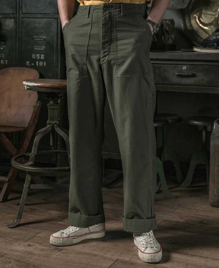 Vietnam War OG107 Fatigue Utility Pants, commonly known as Baker pants, the general to call it by its color OG107, using herringbone fabric, later changed to satin drill fabric, then later is thin cotton sateen. Mainly used as working clothes and as a combat suit during the Vietnam War.