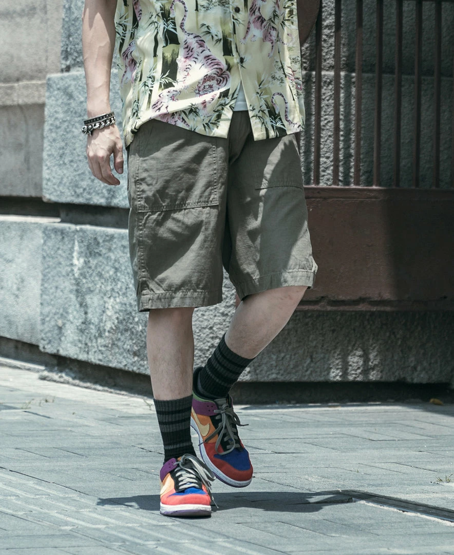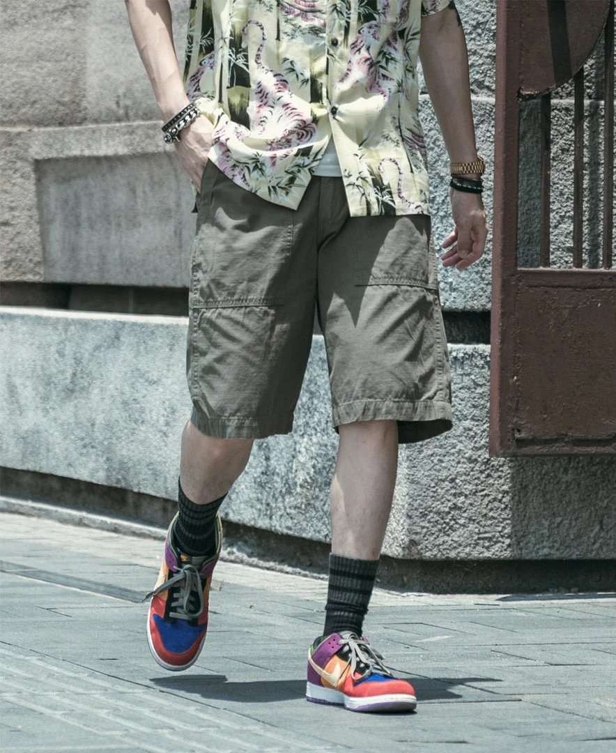 These shorts use our custom-made fabrics, and the materials are based on 1960s versions, often referred to as “COTTON SATEEN.” It’s different from the tribute silk used in the 1950s, and it was relatively light, soft, breathable, and of moderate thickness.